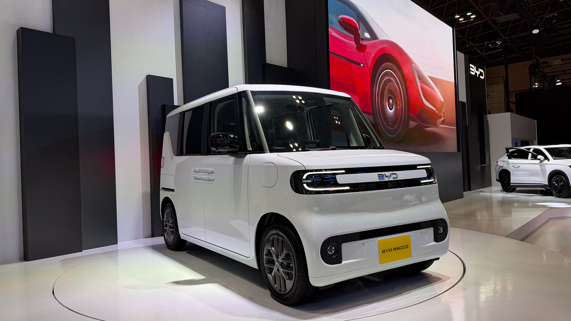 BYD初の海外専用設計モデル。日本向けに開発中の軽乗用EVであるBYD RACCO(ラッコ)のプロトタイプを世界初公開。2026年夏に導入予定。バッテリー容量や価格などの詳細は未公表ですが、東福寺社長のスピーチで「スタンダードとロングレンジの2タイプをラインナップ」することが示されました。