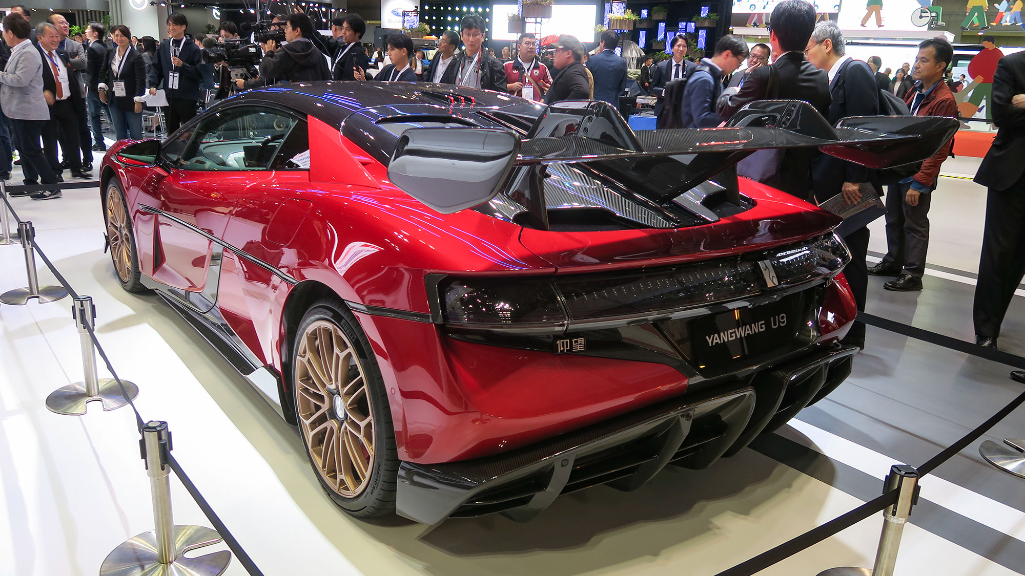 BYDの高級車ブランド「仰望(ヤンワン)」の高性能BEV「YANGWANG U9」。今年9月にはチューンナップモデルの「YANGWANG U9 Xtreme」がニュルブルクリンク北コースで6分59秒157を記録して、世界最速のEVスーパースポーツカーとなりました。日本発売予定などはなく、参考出品。