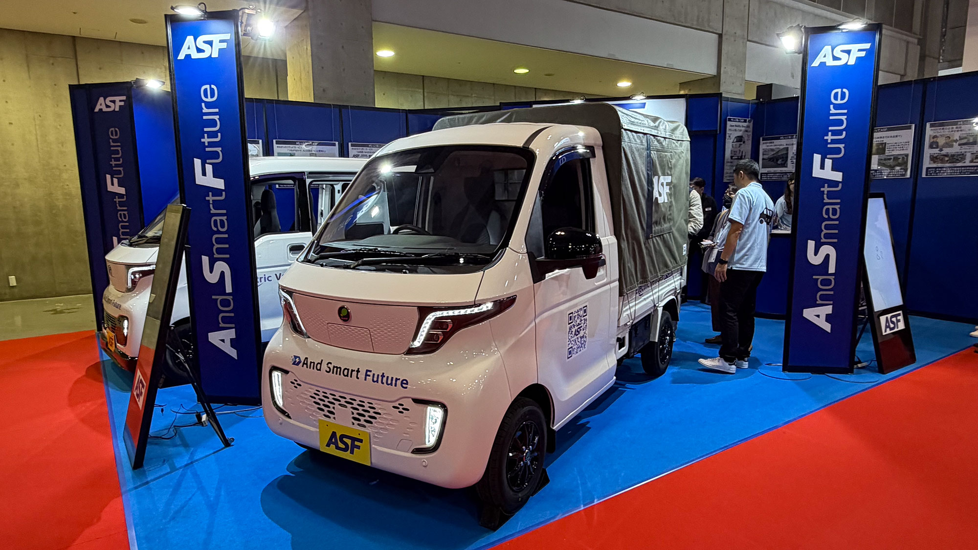EVベンチャーとして唯一、東ホールに出展していたのが軽商用EVを展開するASF。今回のJMSで、新型EV軽トラック「ASF2.0PT」を発表しています。