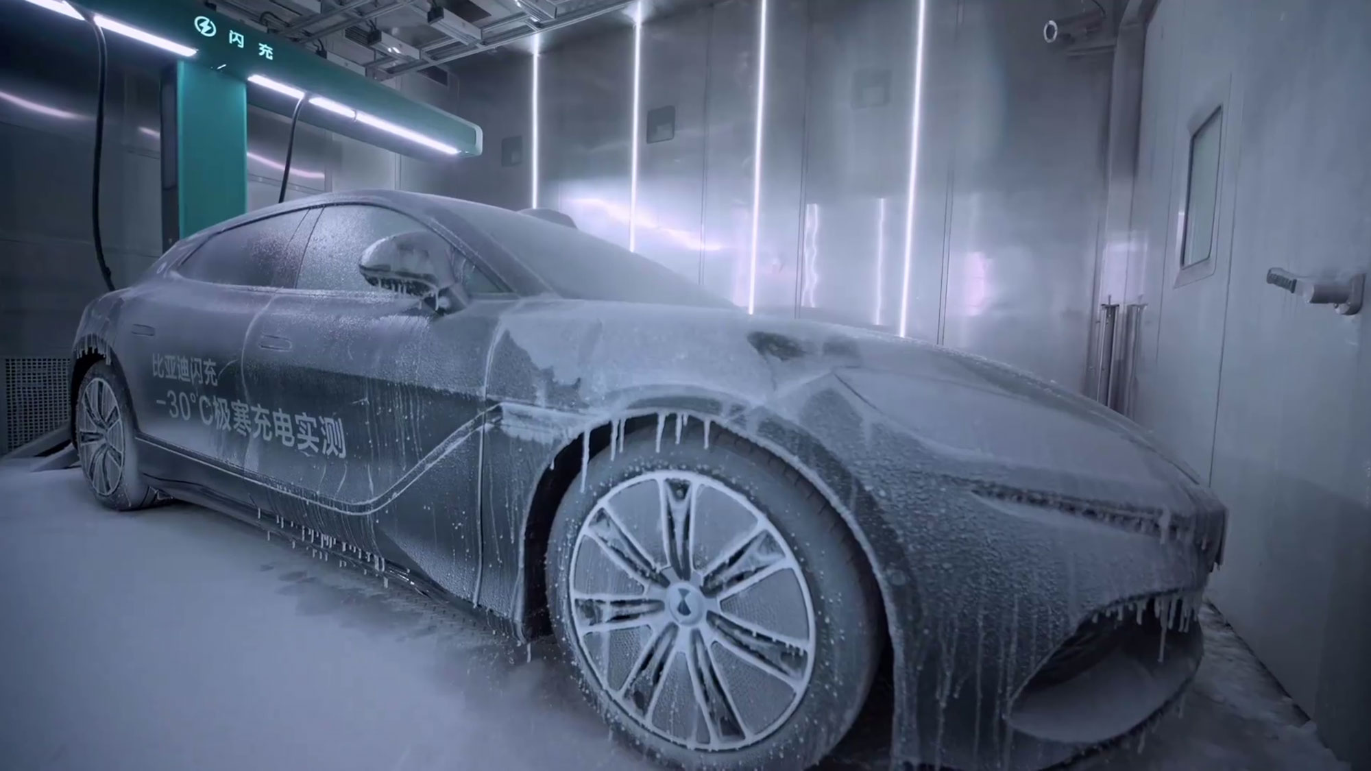 マイナス30℃での充電試験(BYD公式ライブ配信より引用)。