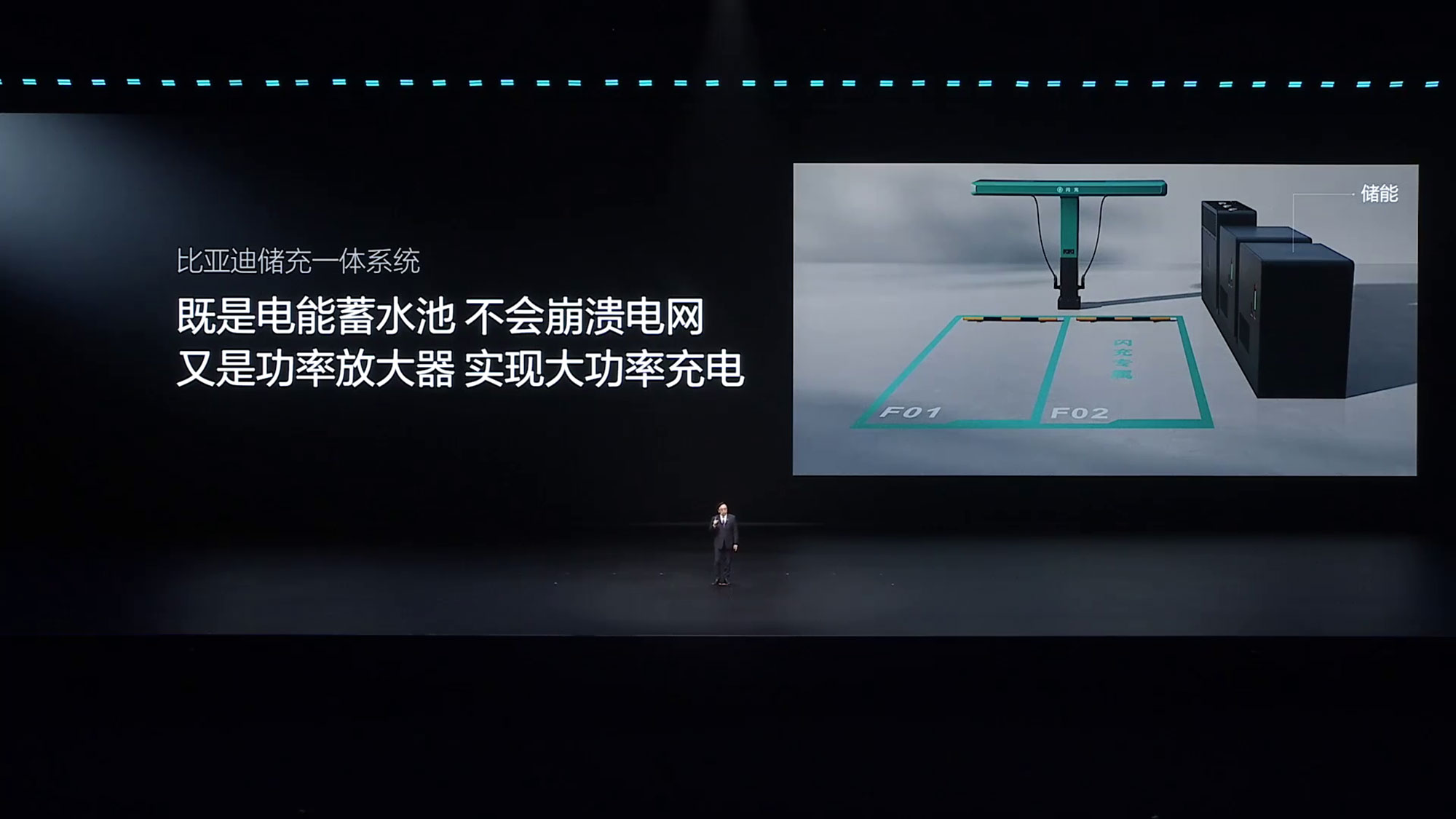 バッテリーを内蔵し電力網への負担を緩和(BYD公式ライブ配信より引用)。