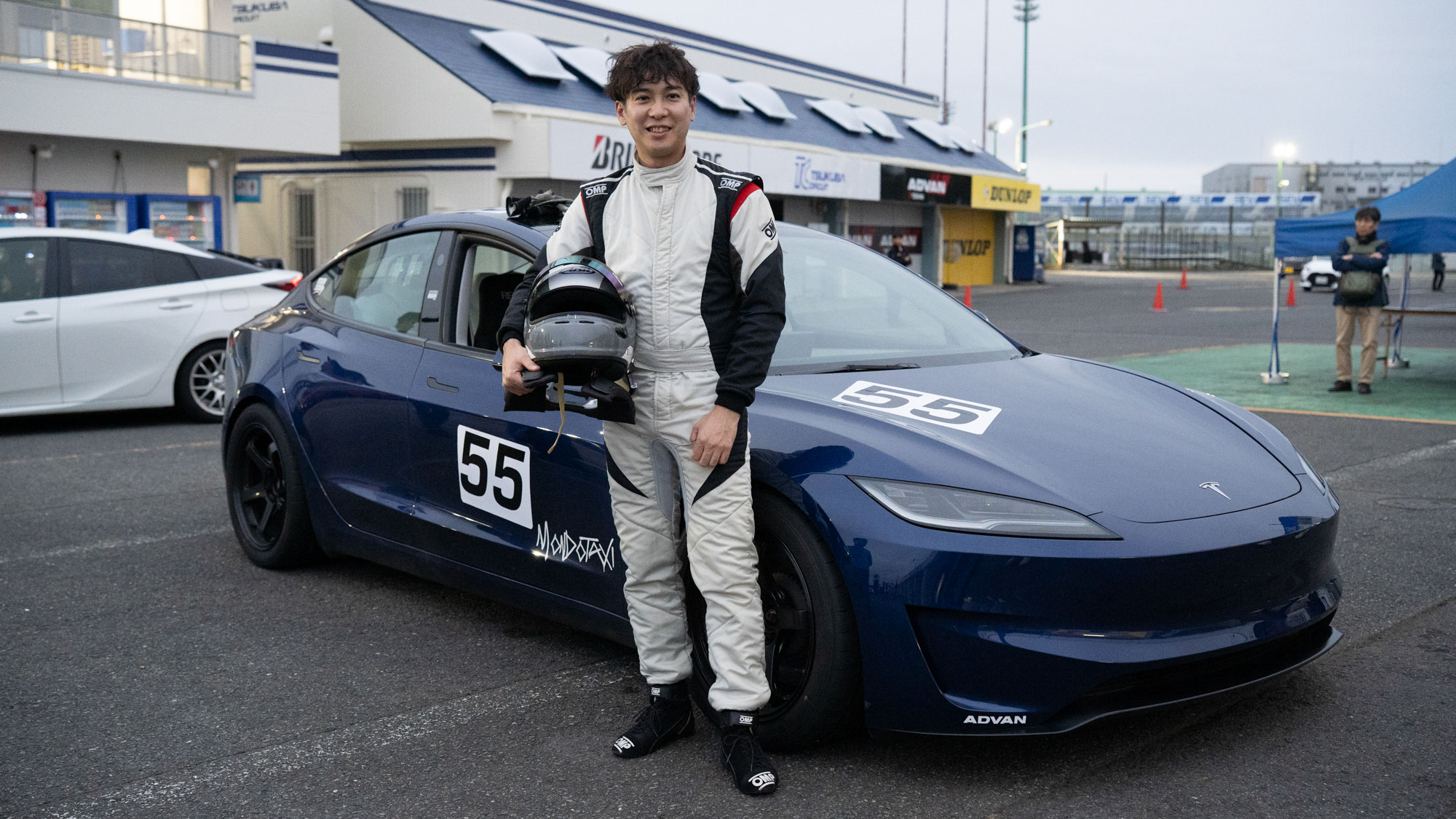 予選3位はEV-2クラスのトップタイム1分03秒834を出したモンド選手。1分04秒107のYUU選手を僅差で上回りました。2023年の第6戦でデビューして以来、これまでずっとモデル 3 RWDで参戦してきたモンド選手。M3Pでの初予選でしたが、思った以上にタイムが良かったそうです。