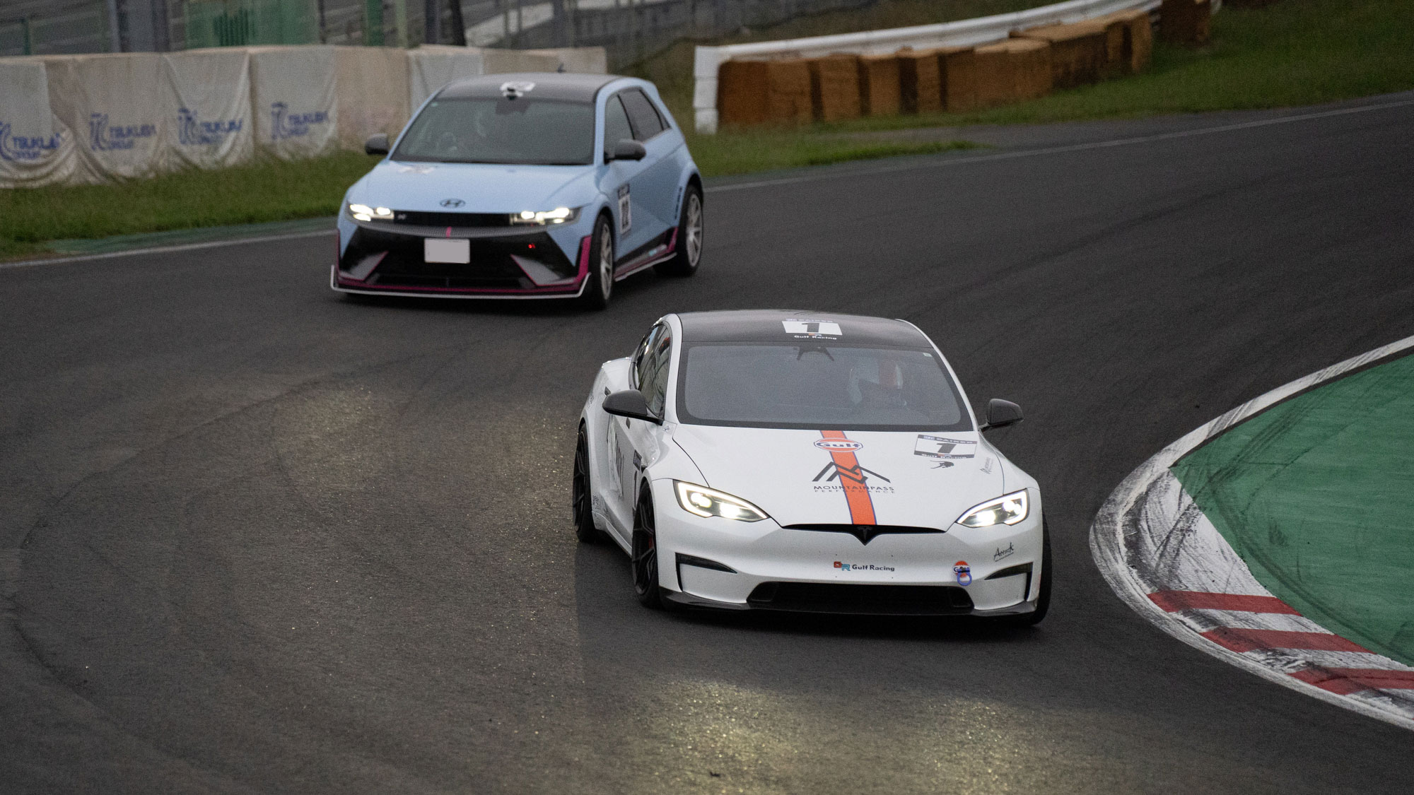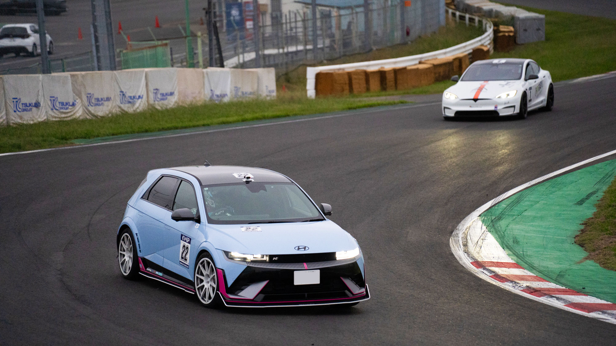 予選に参加したのは13台。注目は、最高峰のEV-1クラスにヒョンデ IONIQ 5 Nが3台エントリーしたことです。2年連続の総合王者を決めているKIMI選手(テスラ モデルS Plaid)を、IONIQ 5 N勢がどこまで追い詰めるかが見どころです。