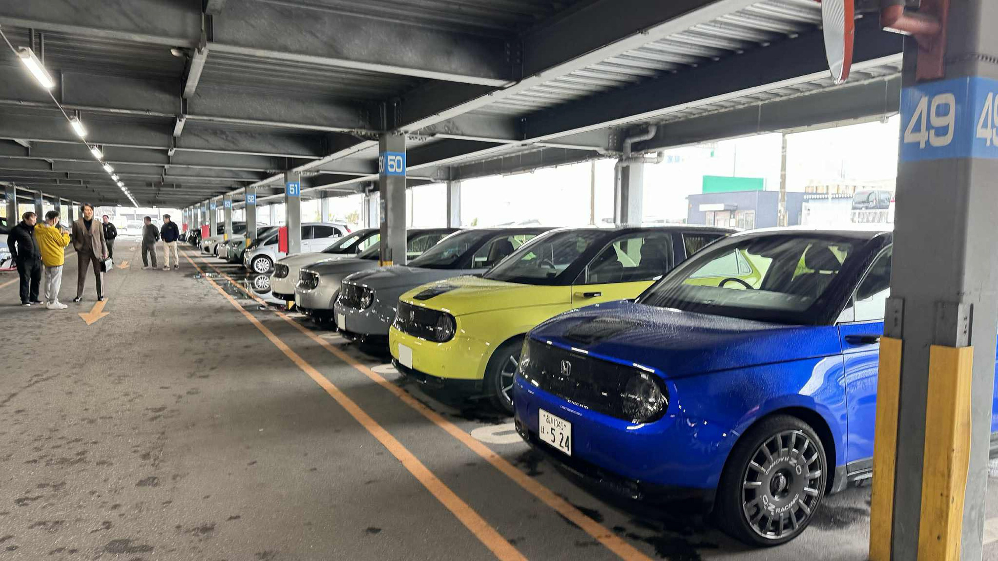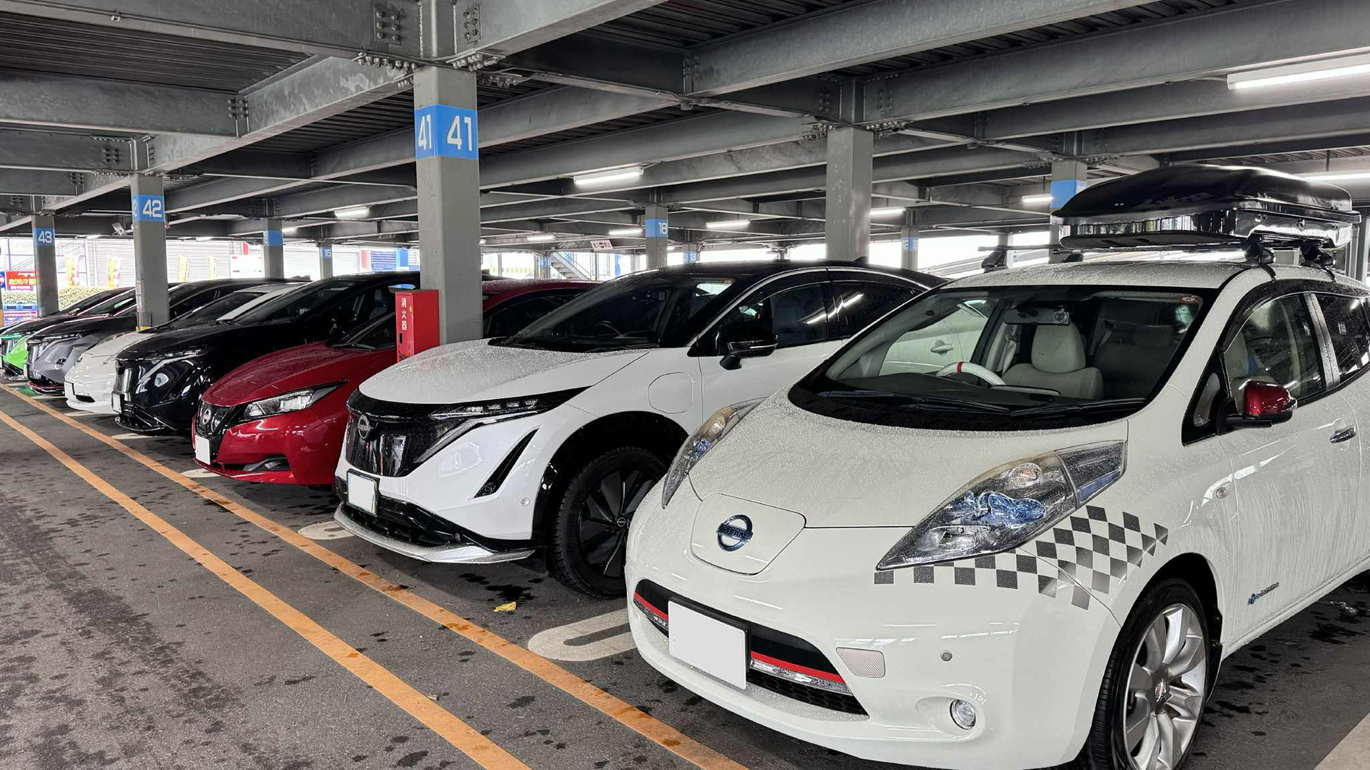 会場になったのはスーパーオートバックスかしわ沼南店(千葉県柏市)の立体駐車場です。午前中から続々と集まってきたEVやPHEVは、スタッフに案内されてメーカーごとに整列。同じ車がずらっと並ぶのは写真映えしますし、近くに停めることで、初対面の人とも話すきっかけが生まれます。