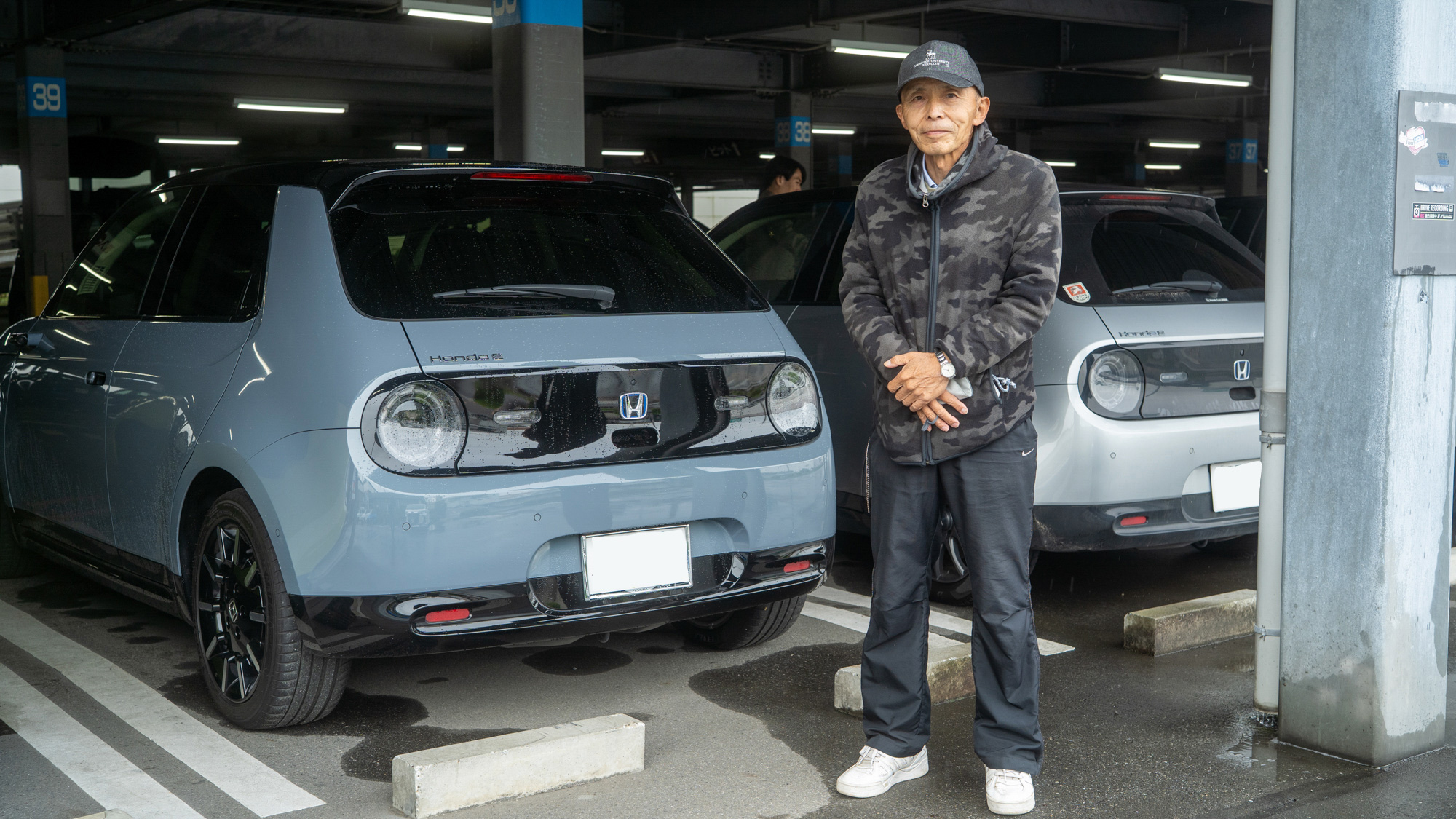 Honda eにしたのは、サイズがちょうど良かったのと、リア駆動でハンドリングが魅力的だから、とのこと。