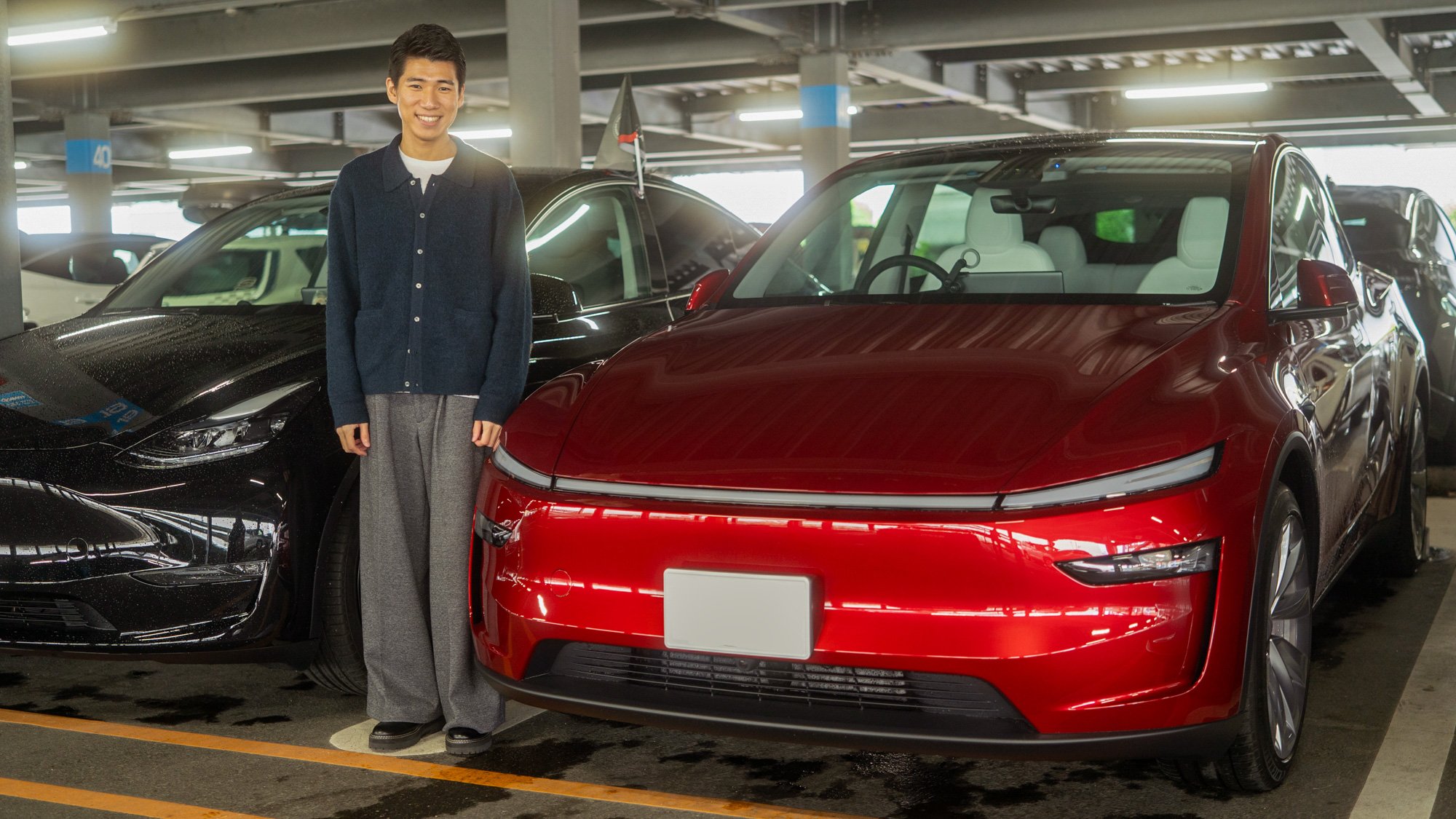先月納車されたばかりというテスラ モデル Y ロングレンジの前で取材に答えてくれたのはユーチューバーのRayさん。電気自動車についてYouTube(@raydaofficial)でさまざまな情報を発信しています。聞けば、2020年1月からテスラユーザーで、モデル 3を2台、モデル Y パフォーマンスを経て、通称ジュニパーと呼ばれるこの新型が4台目のテスラだそうです。