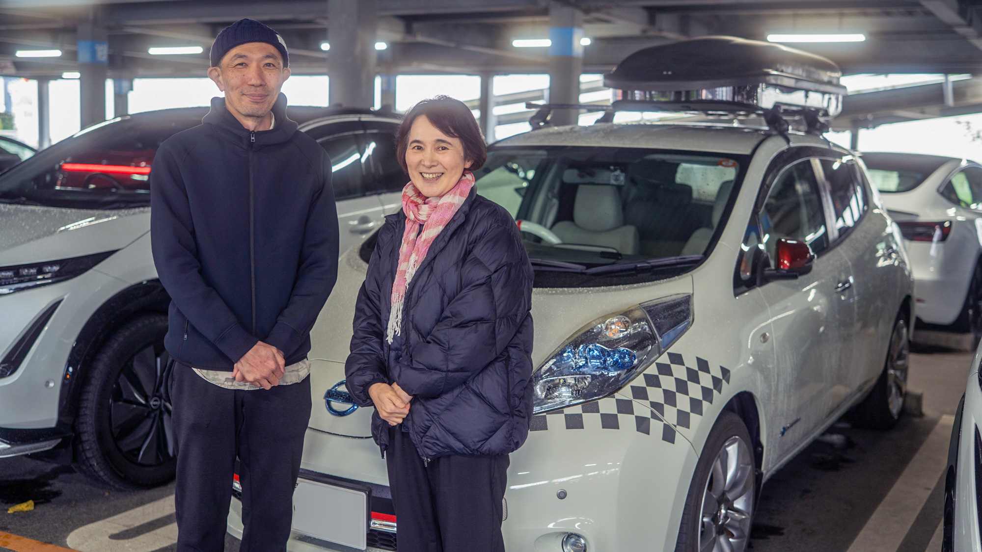 2012年から乗っている日産リーフ(ZE0)で参加していた鈴木さんご夫妻にインタビューさせてもらいました。