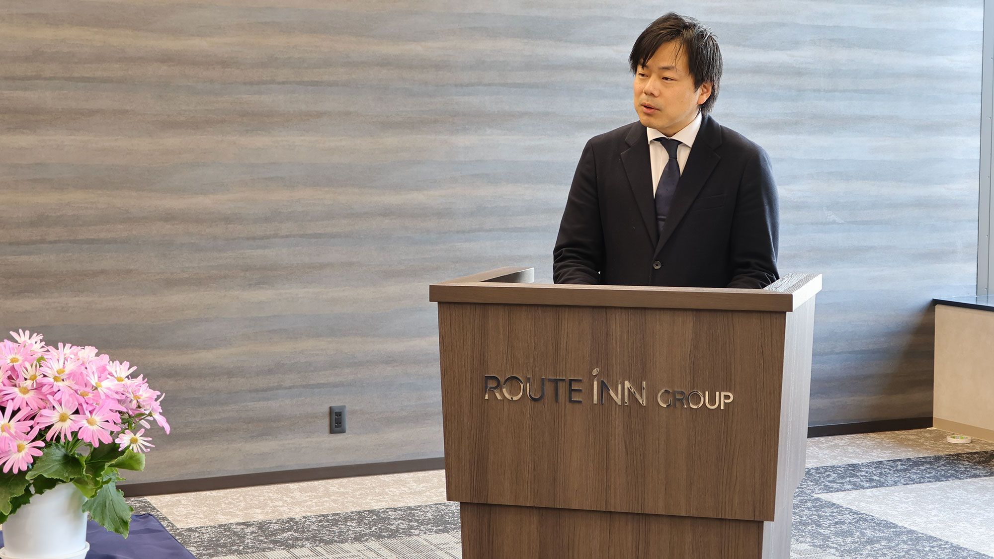 セレモニーではミライズエネチェンジ、EV LIFE事業本部の内藤義久本部長が挨拶。「ルートインジャパンは、EV普及黎明期から充電インフラ整備を牽引してこられました。設置スポット数や利用実績も圧倒的。その先見性に加え、維持管理、おもてなし、利便性のいずれにおいても卓越した取り組みを実践し、まさにEV充電スポットの理想の姿を体現されています。多くのEVユーザーのみなさんから、ルートインホテルズに泊まればEV充電器がある安心感に感謝する声が届いています。われわれはEV充電に取り組む後輩ではありますが、ともにEV充電器普及に努めていただき、本当にありがとうございます」と、受賞理由の説明と感謝の言葉が述べられました。