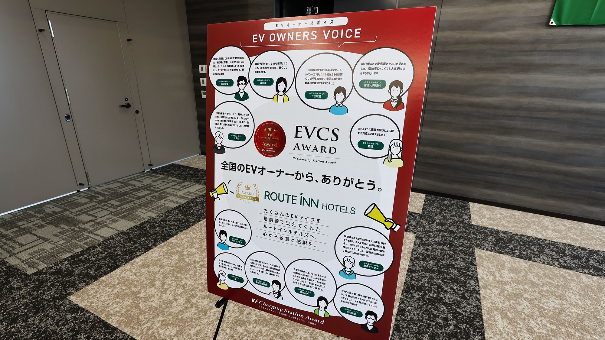 「EV充電エネチェンジ」を運営するミライズエネチェンジが創設した『EV Charging Station Award』で、ルートインジャパンが第1回総合賞(グランプリに相当)を受賞、表彰セレモニーが開催されました。EVユーザーからの口コミなどが評価の基準。「感謝のエール」でユーザーフレンドリーな施設を応援しましょう。