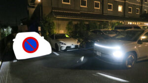 拭き上げ用駐車区画の左奥に見えるのが同社の充電器。市川氏に「筐体デザインが派手ですよね」と質問したら「目立つように」というお答えでした。たしかに、目立っています。