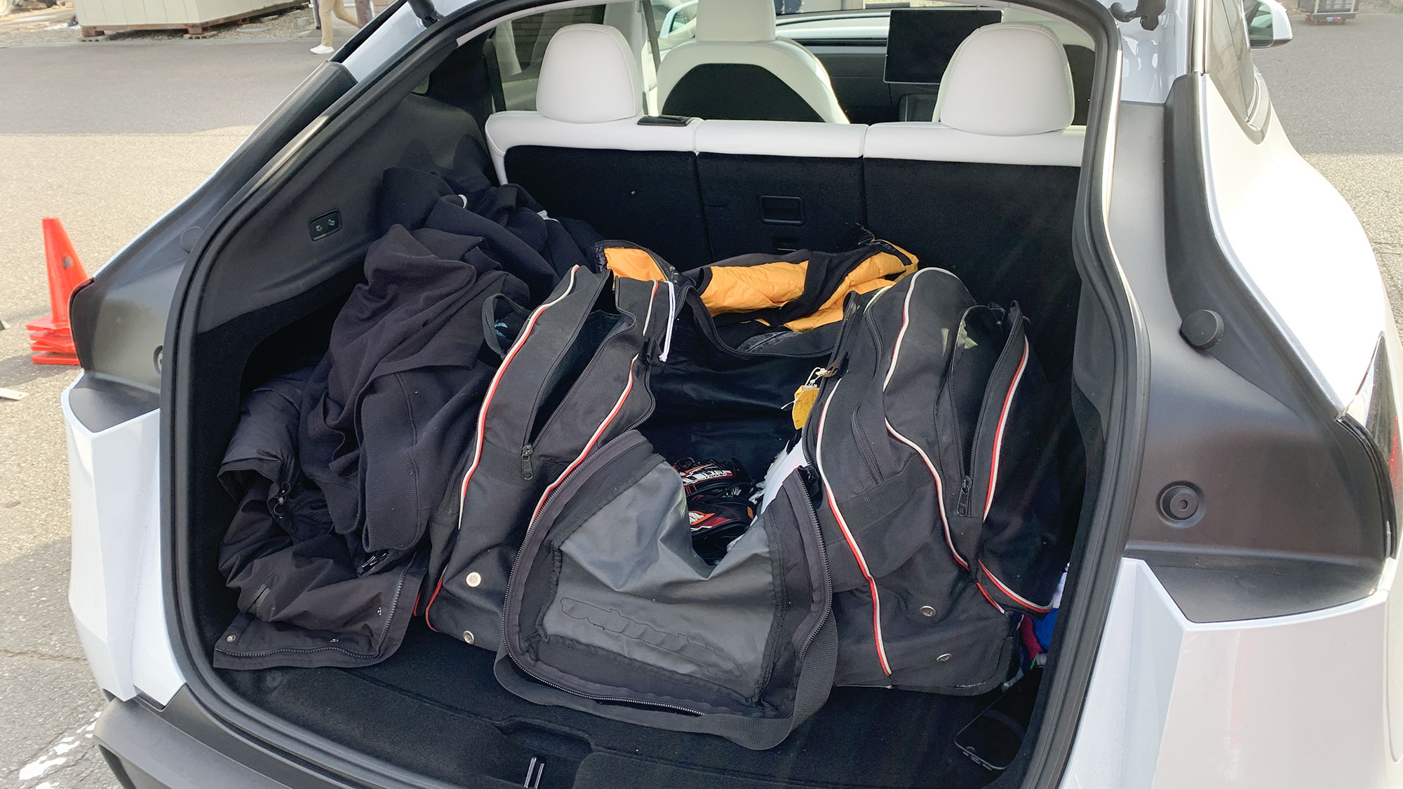 基本的に長距離を走ることはあまりなく、月に一回程度、近場のサーキットに行く時くらいだということで、自宅の充電についてはACコンセントのみで対応しています。取材した日は茨城県にある筑波サーキットまで次男とともにレースに参戦するためにやってきました。レーシングスーツやヘルメットなど2人分のライディングギアを積み込んでもラゲッジスペースは十分な広さがあって「自分の使い方で不足を感じることはない」とも語っていました。
