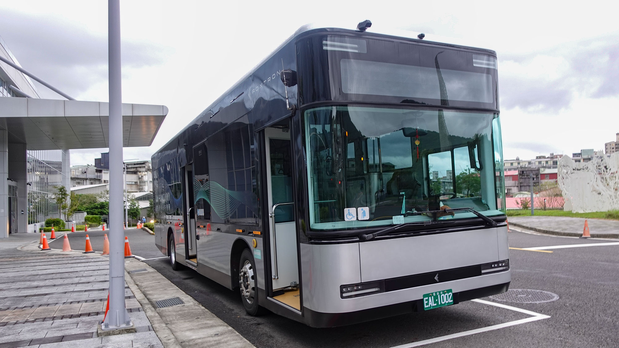 外観の印象は、台湾で見かける他のバスと比べて圧倒的にスタイリッシュだ。2022年に日本のグッドデザイン賞を受賞していることを知れば、その洗練された造形にもうなずける。サイドミラーは欧州の最新バス同様に電子ミラーへと置き換えられ、視認性と安全性に配慮した設計が際立つ。実車の観察では、フロントのタイヤハウス上に2つのボックスがあり、そこにバッテリーが搭載されているのが見て取れた。