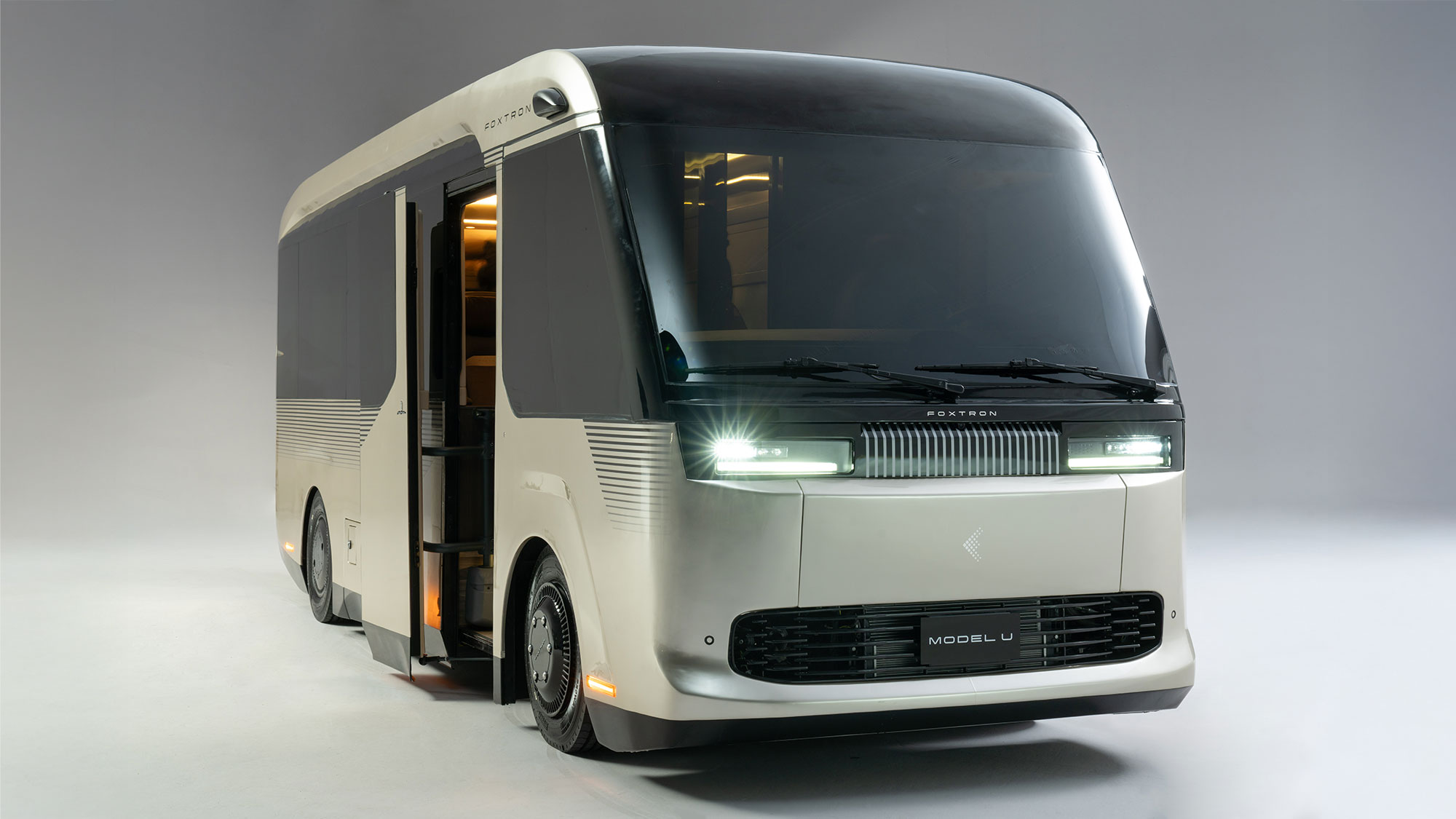 見学はFOXTRON本社(台湾・新北市)から始まった。試乗は叶わなかったものの、MODEL Tを2台じっくり観察でき、そのうち1台は通勤時間帯に社員シャトルとして運用されているという。