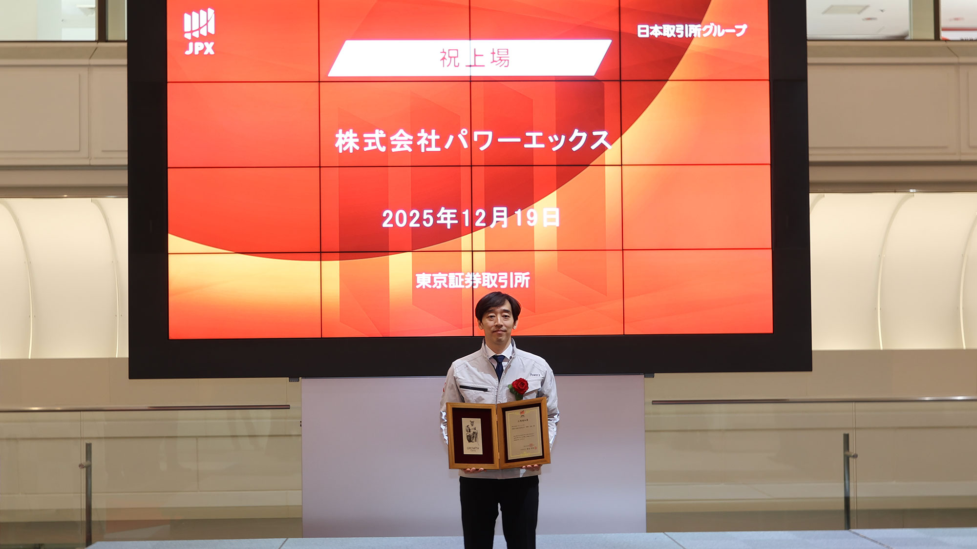 2025年12月19日、蓄電池型超急速EV充電システム「Hypercharger」による急速充電ステーションを全国に展開する株式会社パワーエックス(本社:岡山県玉野市、取締役 代表執行役社長CEO:伊藤正裕氏)が、東京証券取引所グロース市場へ新規上場しました。