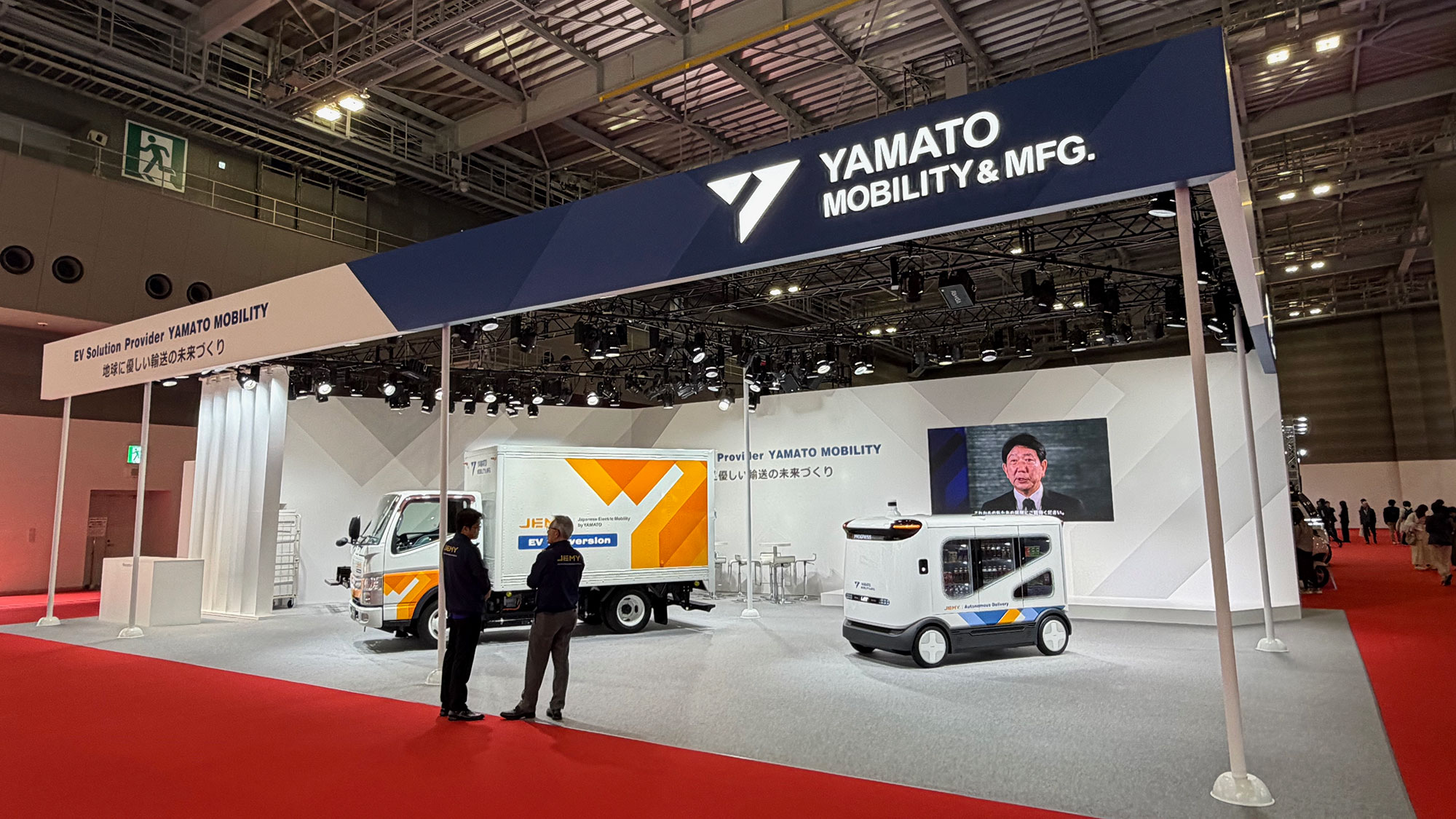 自動車ショーと聞くと最新モデルやショーカーを思い浮かべるだろう。だが、ジャパンモビリティショー2025会場の東7ホール、モビリティ関連展示のコーナーに出展するヤマトモビリティ&Mfg. 株式会社(以下、ヤマトモビリティ)のブースで存在感を放っていたのは、旧型の三菱ふそう・キャンターをベースにした「改造EVトラック」だった。