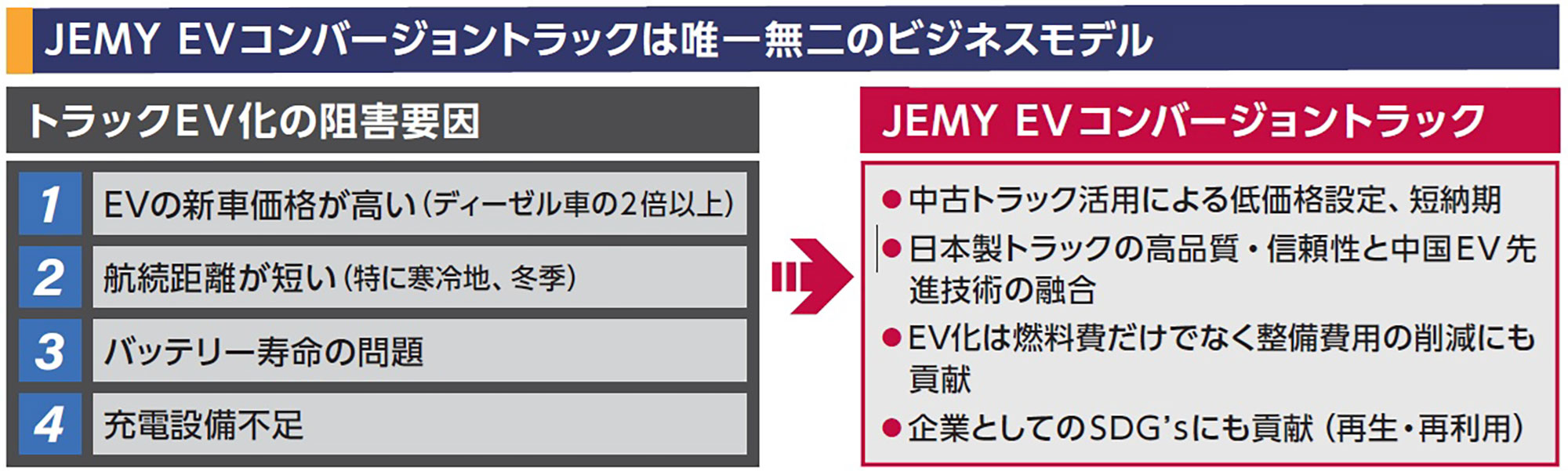 商用車フリートのEVシフトは新車を買うだけが答えではない。中古トラックのEV化、すなわち車体のリユースはCO2削減に直結し、企業のSDGs(再生・再利用)への貢献にもつながる。JEMYのアプローチは、商用車の電動化を前進させる有力な選択肢になりうる。