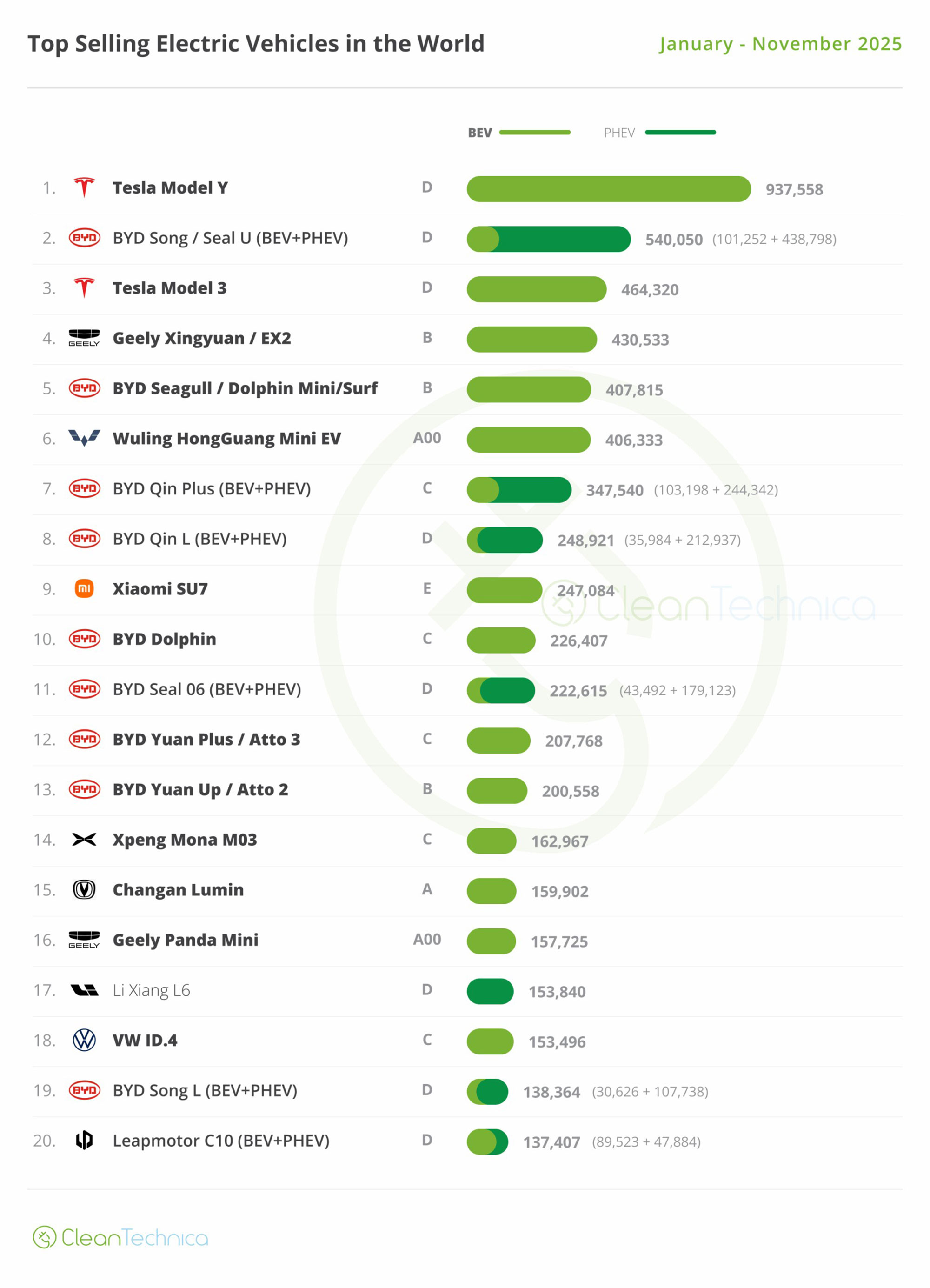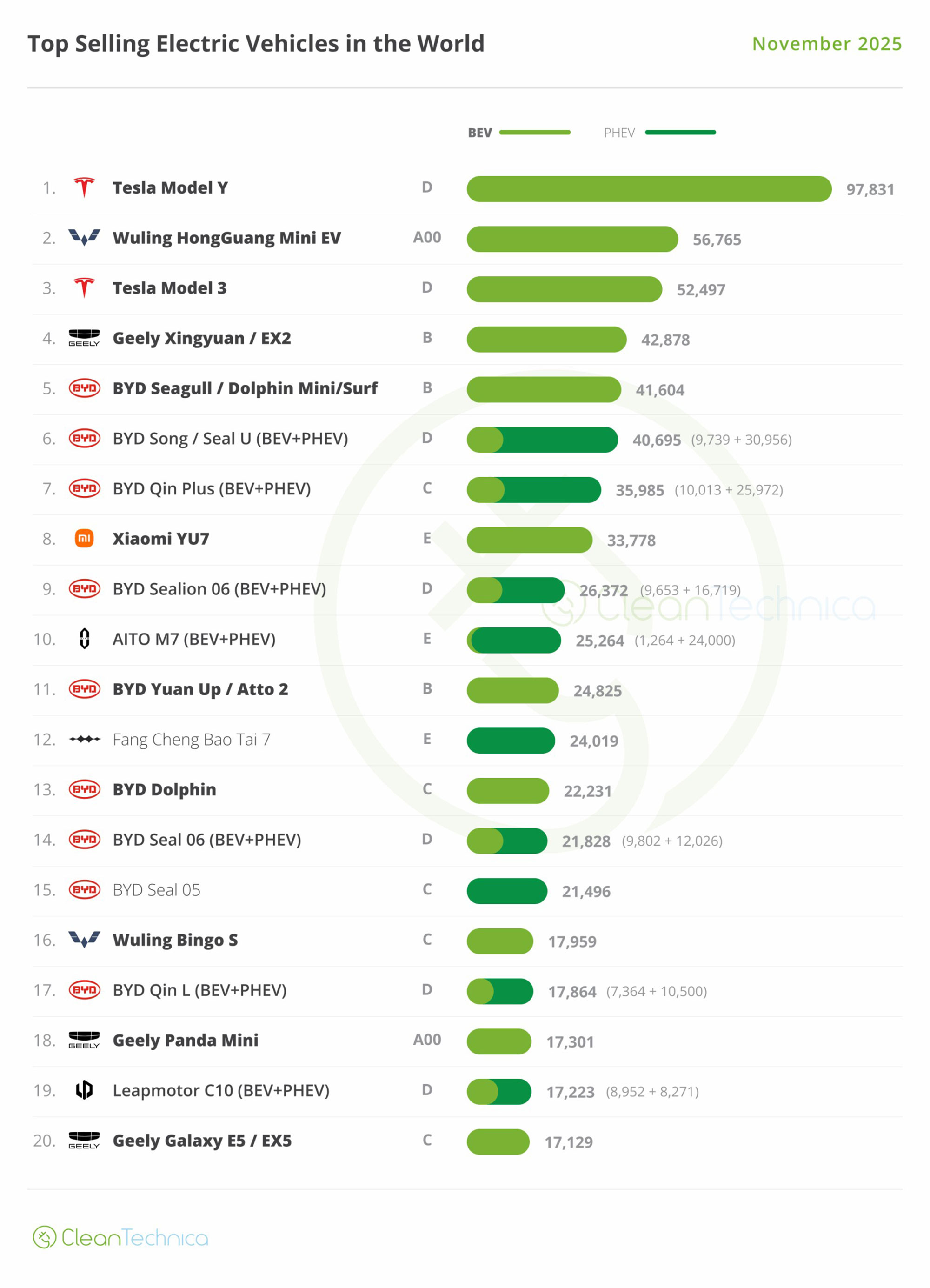【元記事】Global EV Sales Leaders — Top Selling Models in November 2025 by José Pontes on 『Clean Technica』