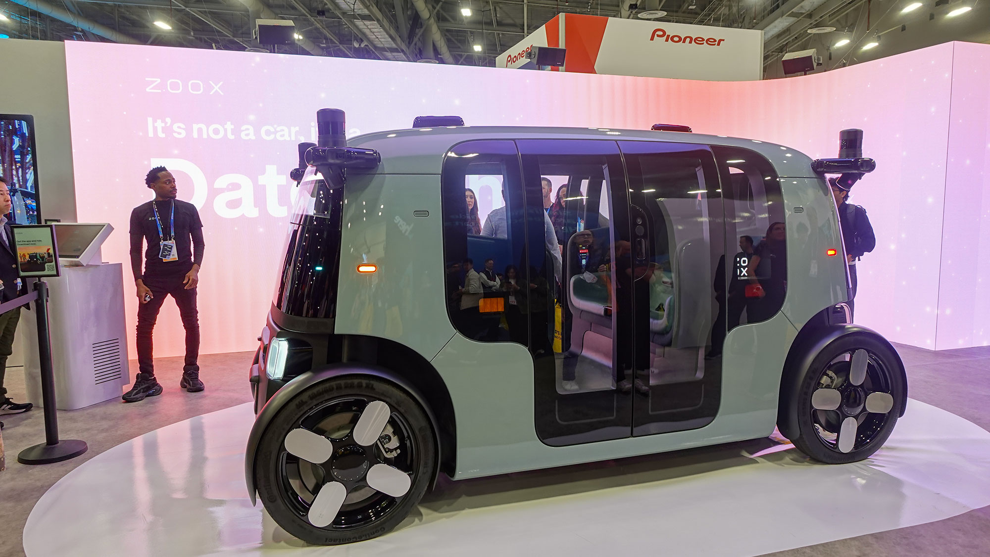 運転席を持たない4人乗りEVで、レベル4自動運転を前提とした設計です。筆者も実際にこのZOOXロボタクシーに乗車しており、その詳細は別途試乗レポートとしてまとめる予定です。