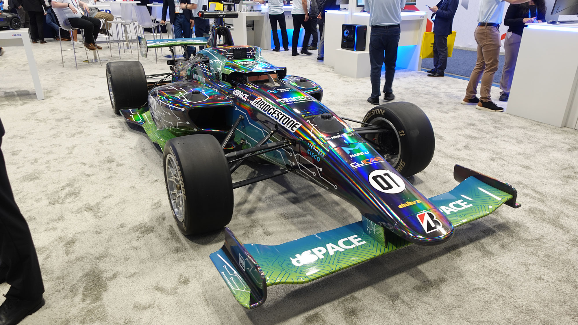 昨年のレポート記事でも触れたドライバーレスのインディカーレース「INDY AUTONOMOUS CHALLENGE」の車両が、今年はdSPACEブースに展示されていました。サーキット走行デモはなかったものの、ソフトウェアと制御技術の進化は着実に進んでいることを示していました。