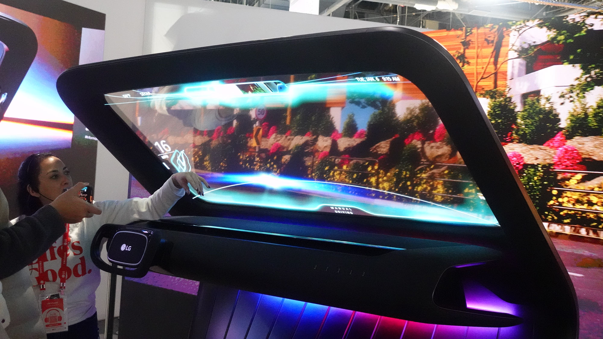 サプライヤーブースに目を向けると、LGが自動運転時代に向けた先進的なコックピット体験を提案していました。フロントガラス全体がスクリーンとなるコンセプトや、インパネ全面を網羅するディスプレイ技術は、車内における情報表示とエンターテイメントの融合を加速させるものとして注目を集めていました。