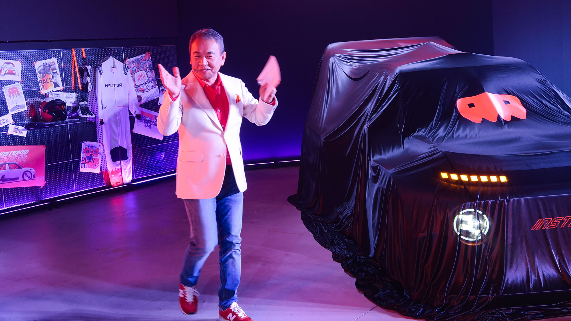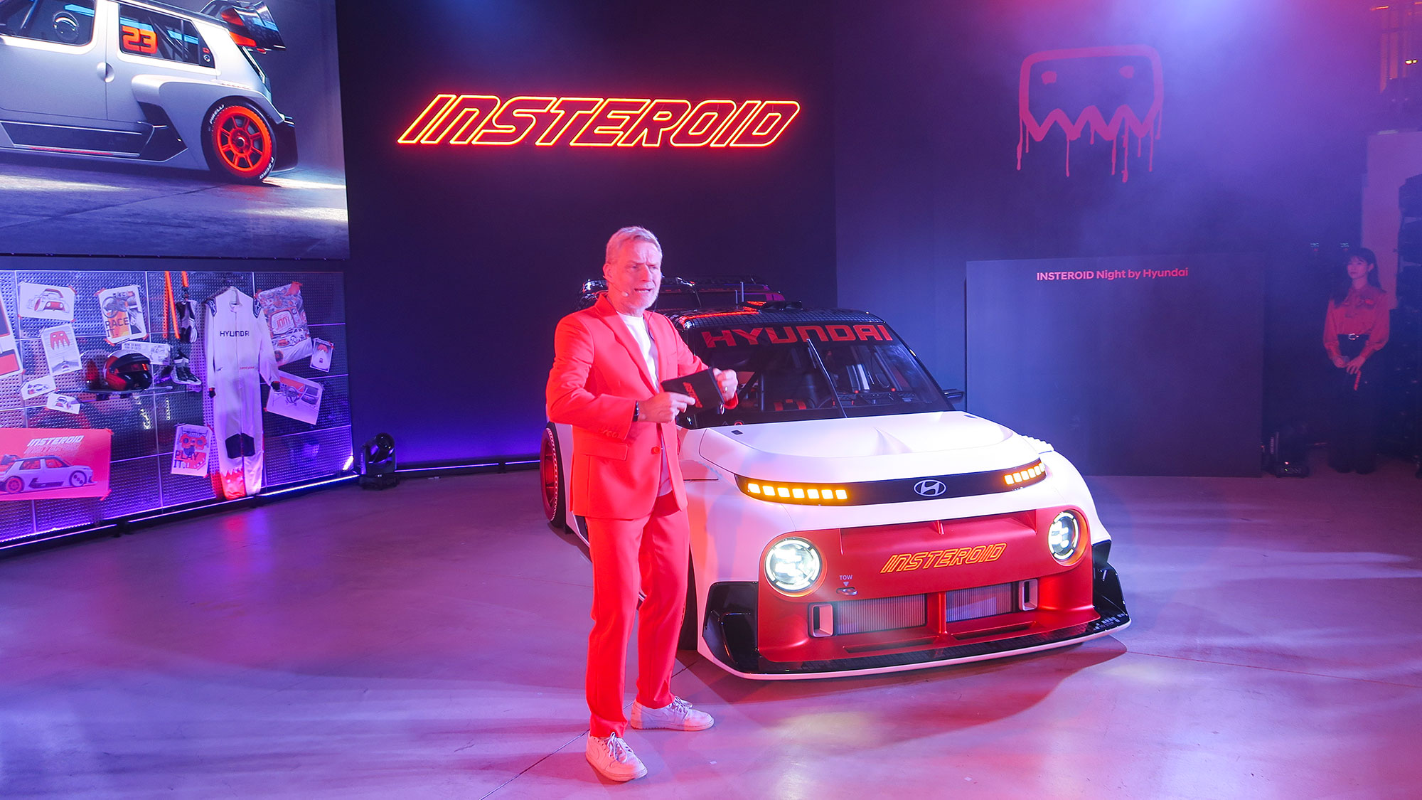 ヒョンデ・モビリティ・ジャパンがスモールEV「インスター」をベースにしたデザインコンセプトカー「INSTEROID(インスタロイド)」の日本初公開イベントを開催しました。盛り上がる会場奥の個室で、七五三木社長とデザイン部門トップのロスビー氏にインタビュー。日本市場に向けたメッセージを受け取りました。