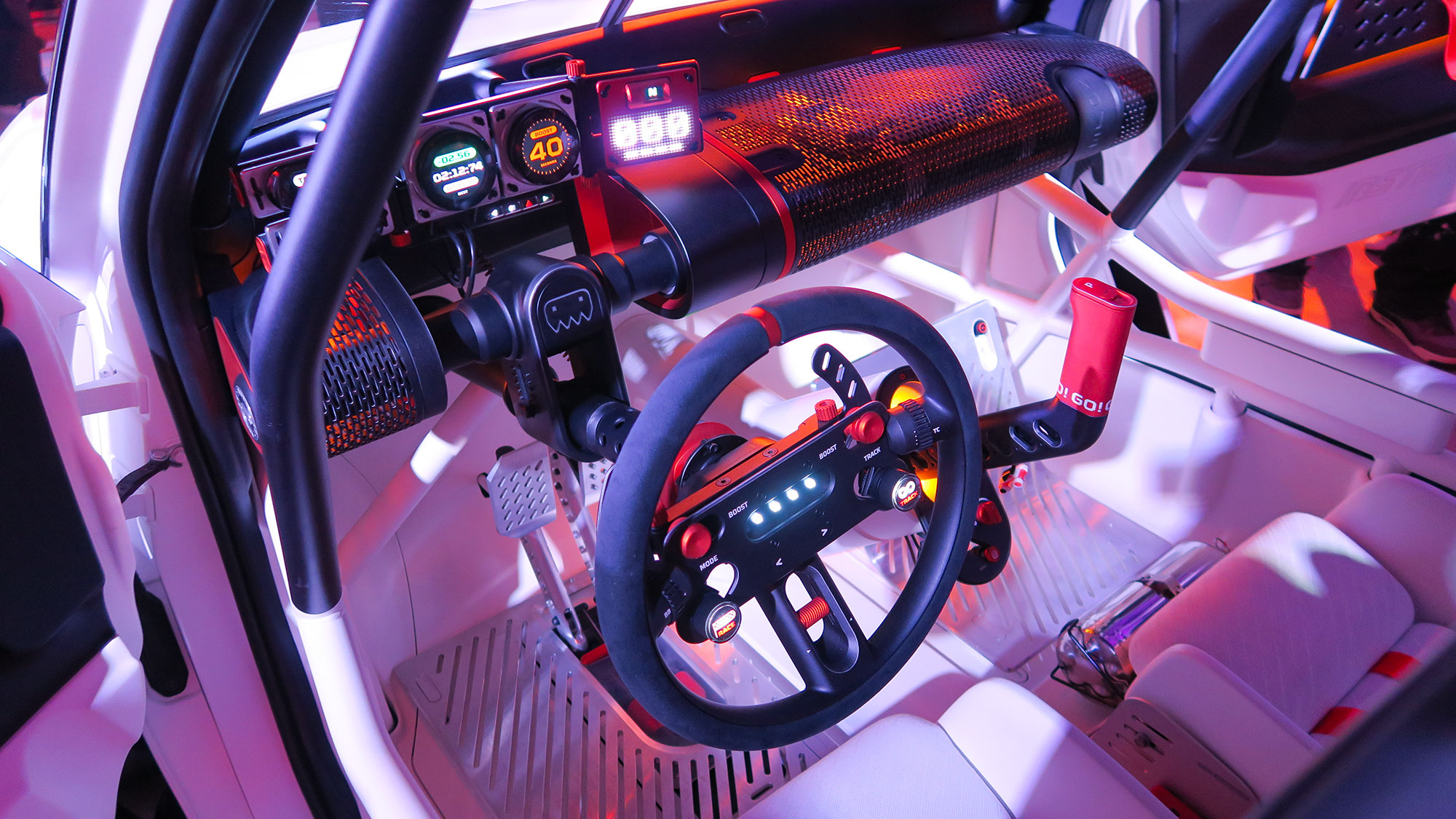 ワクワク感いっぱいのコックピット。ブーストボタンや機能本位のデジタルメーターとか、市販車にいい感じでフィードバックされたら楽しそうです。