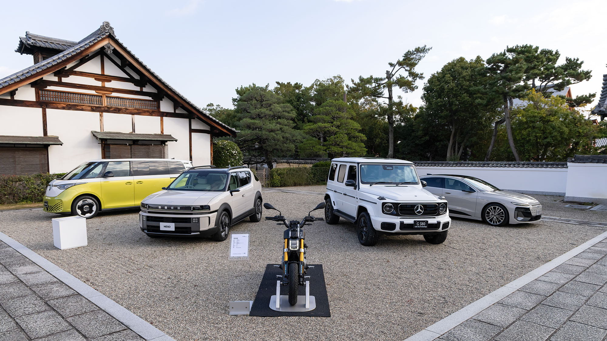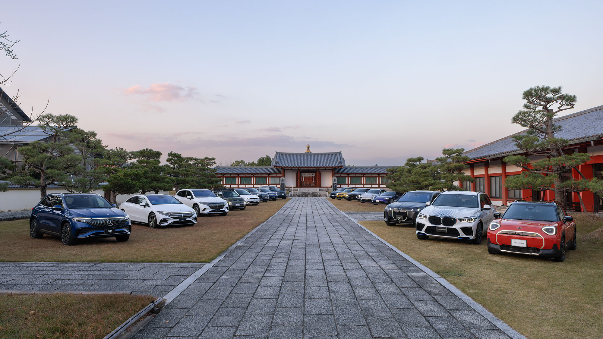 世界遺産の名刹に輸入EVが勢揃い
