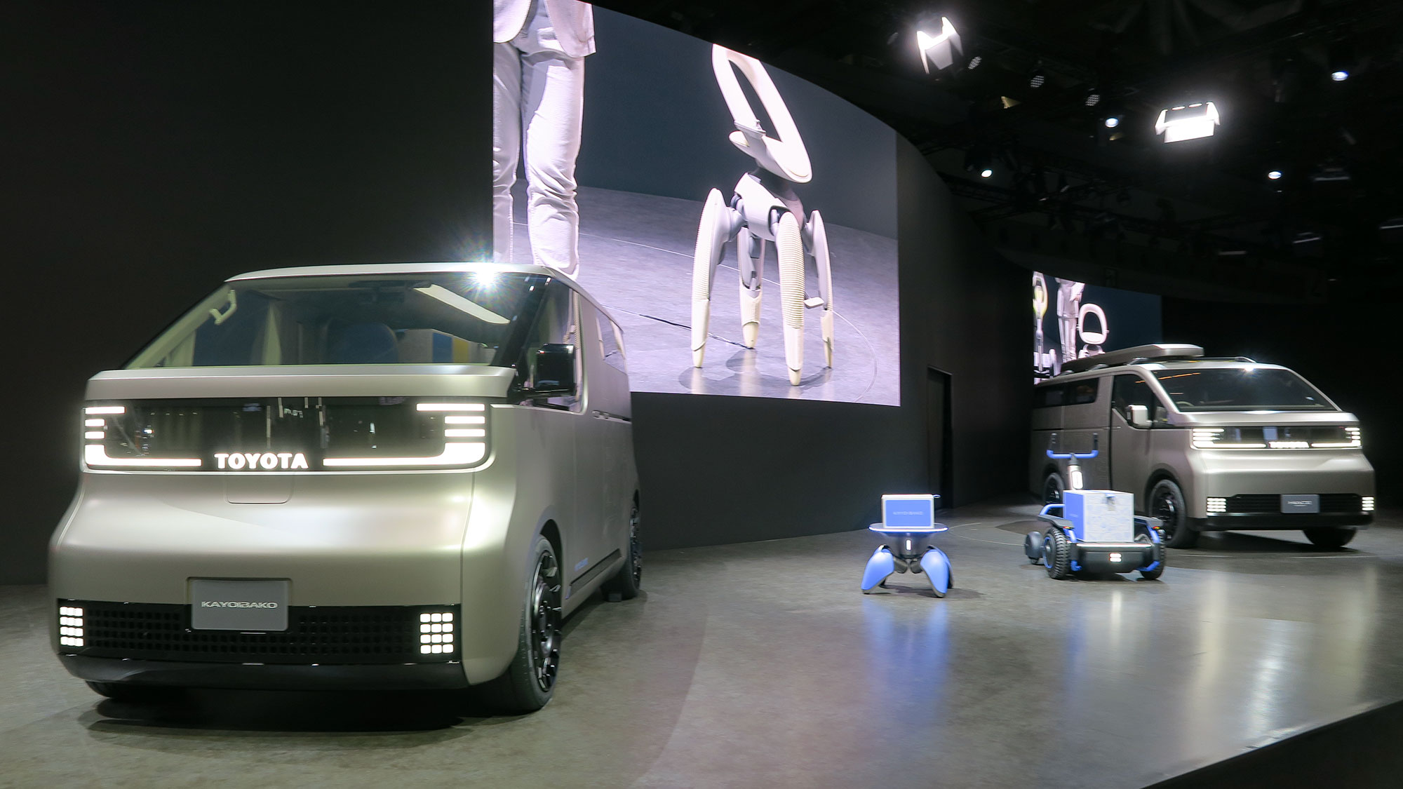 物流のための次世代モビリティ。段ボールに色々なサイズがあるように、KAYOIBAKOにもいくつかのサイズがあって、小さな箱はダイハツがつくり、大きな箱はトヨタがつくるとのこと。