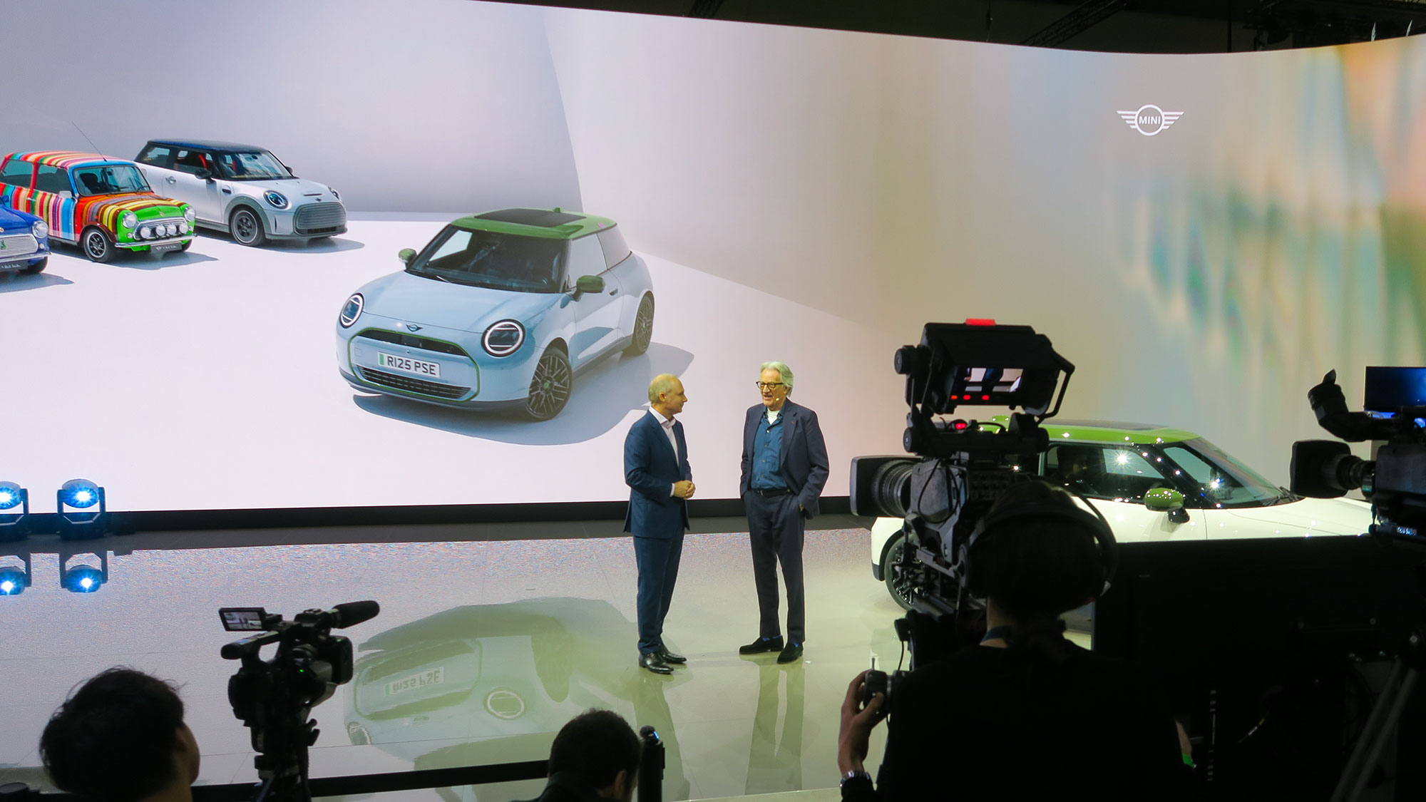 MINIブランドで最大のトピックは、ファッションブランド「ポール・スミス」とコラボした「MINI Paul Smith Edition」の世界初公開でした。なんと、ポール・スミス氏がサプライズで登場。電気自動車の「MINI Cooper SE Paul Smith Edition」の価格は5,980,000円(税込)で、10月29日から日本全国のMINI正規ディーラーで注文受付を開始することも発表されました。