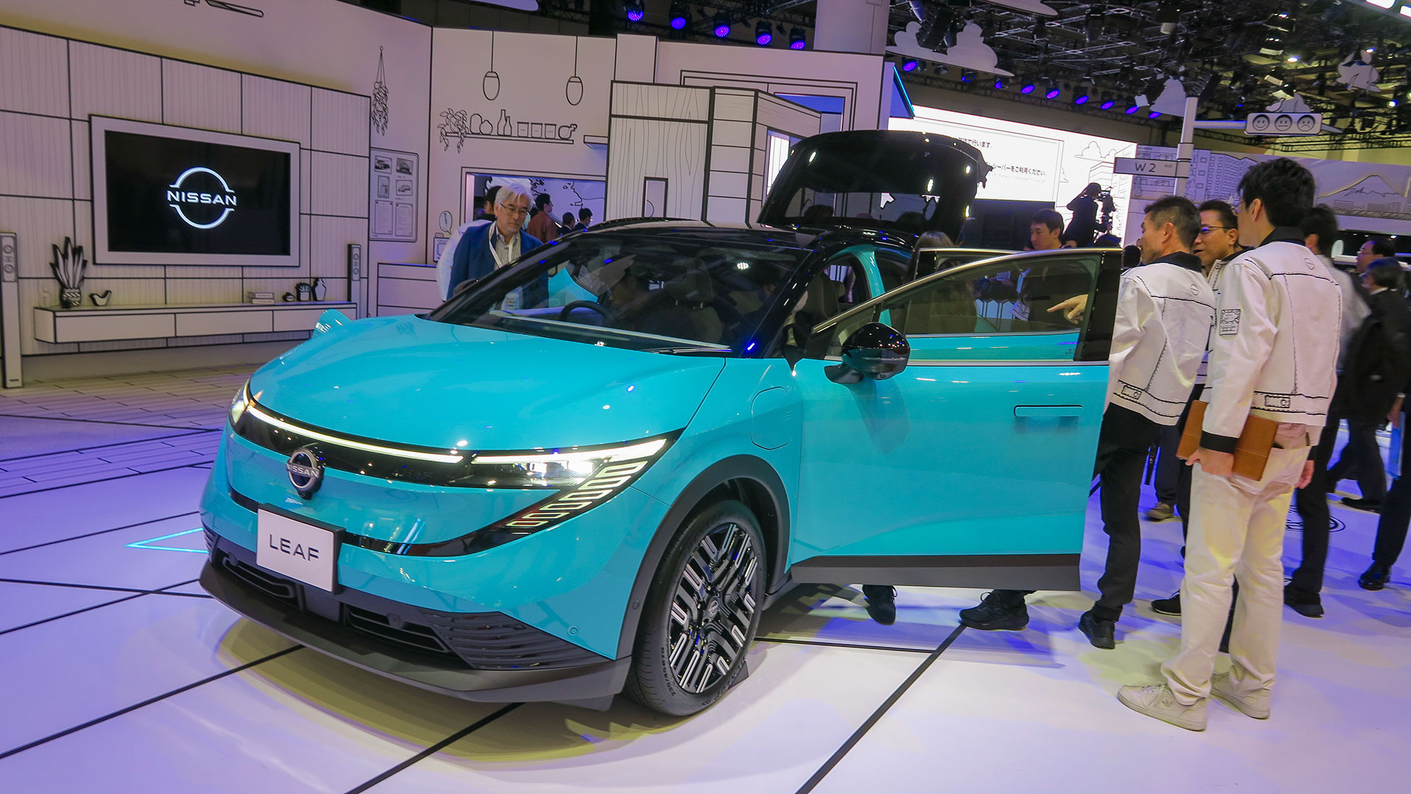 Japan Mobility Show 2025(JMS2025)の⽇産ブースでは、新型リーフやマイナーチェンジ版アリア、日本未導入の2種のEVなどが展示されました。3代目となる新型リーフの詳細はすでに紹介していますし(関連記事)、横浜のグローバル本社ギャラリーや一部ディーラーで実車を見ることはできますが、まだ機会は限られています。そんな中、JMS2025の日産ブースでは実車を間近に見ることができました。日本の報道関係者は先だって開催された発表会で確認している人も多く、プレスディではさほど注目されませんでしたが、外国人プレスは初めて実車を見るという方も多いのでしょう。注目度は高いものでした。