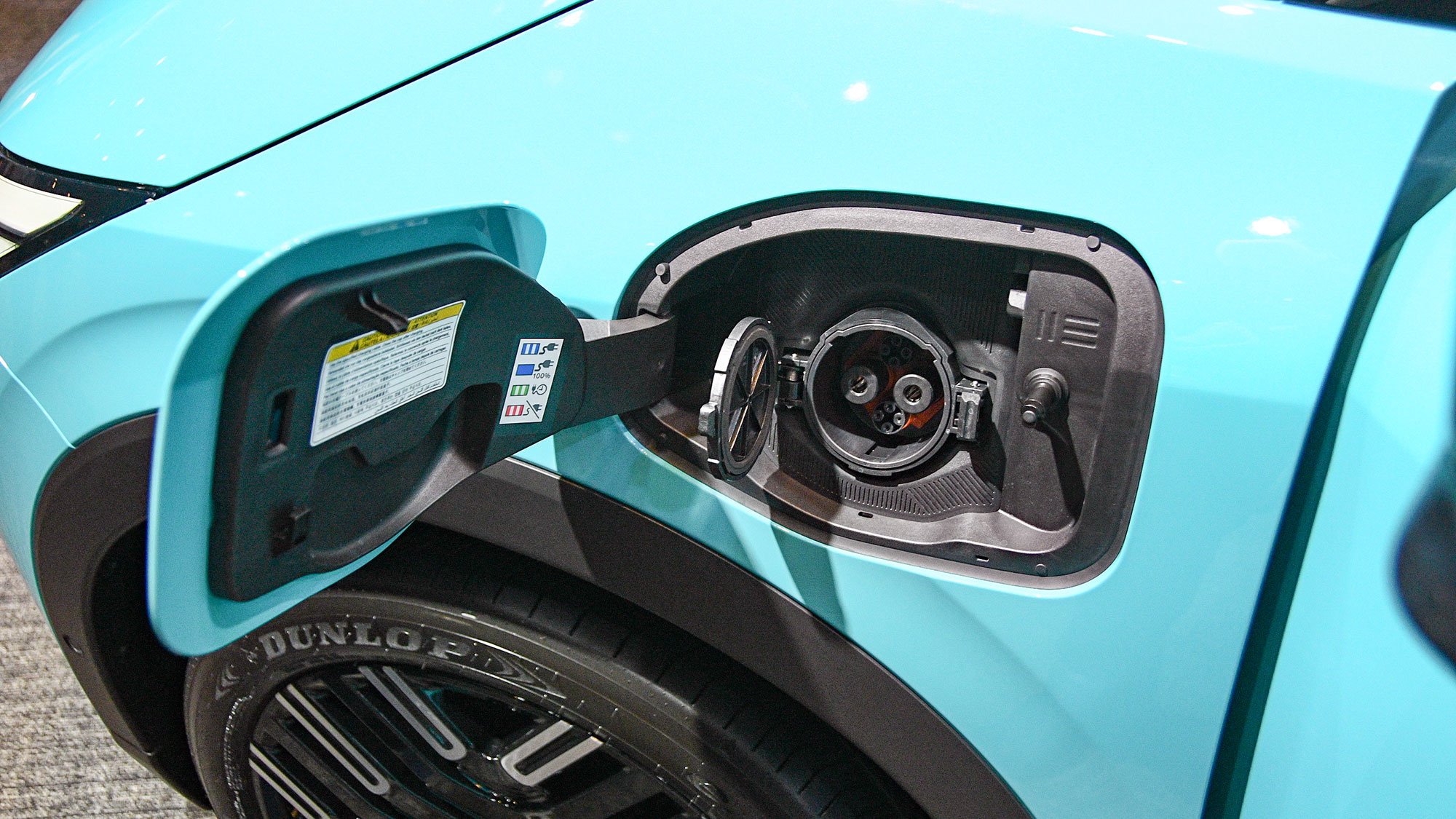 初代、2代目とリーフの充電口はノーズ部分にあり、リッドを開けると普通充電とCHAdeMO急速充電、2つの充電口が装備されていました。しかし今回のフルモデルチェンジではフロントフェンダー部の右側に普通充電、左側に急速充電の充電口となりました。
