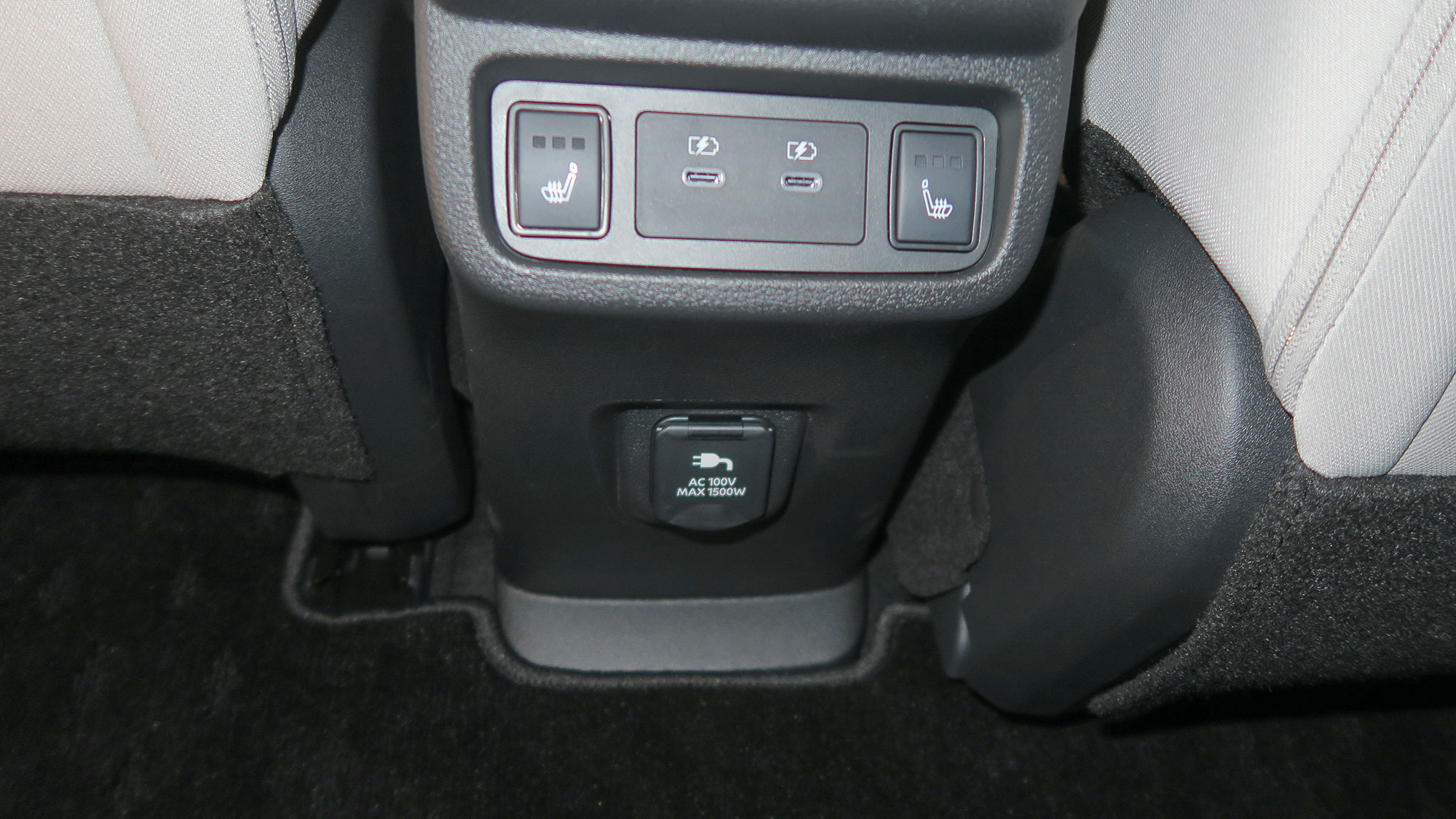 オプションのコンセントは、荷室とセンターコンソールの後部座席側の2カ所に装備。