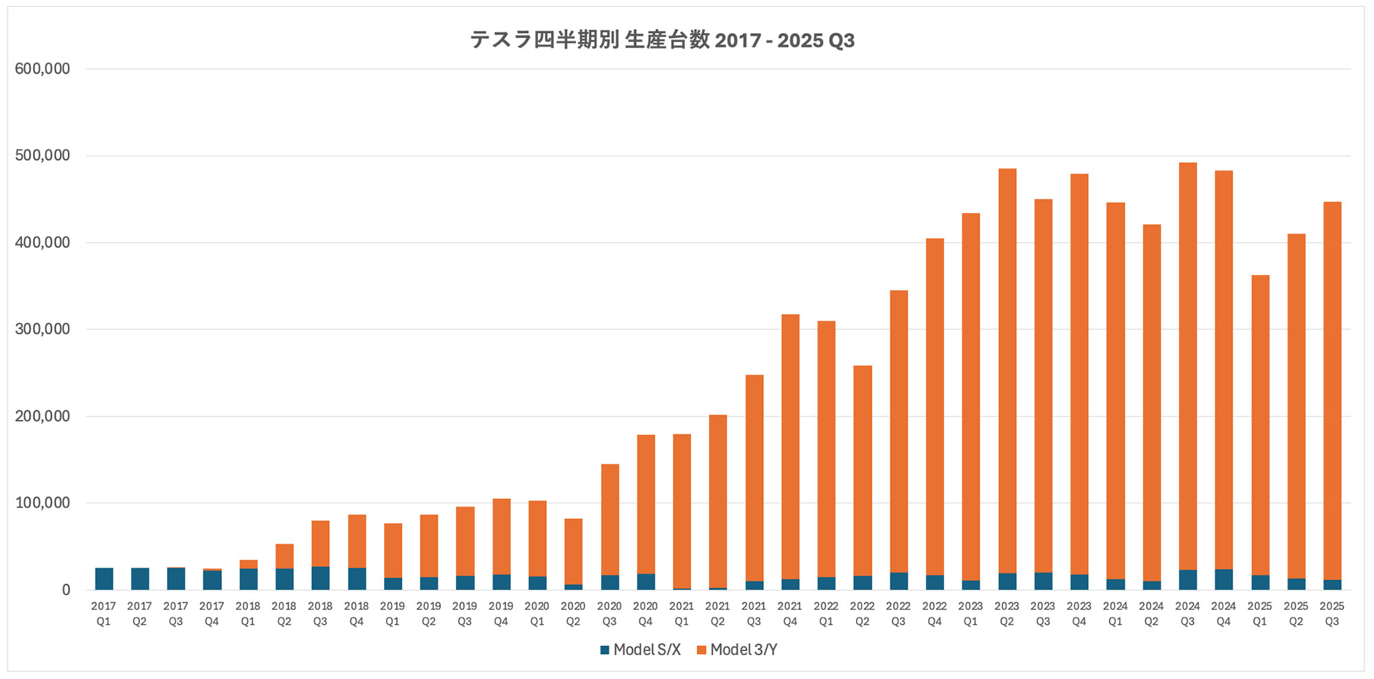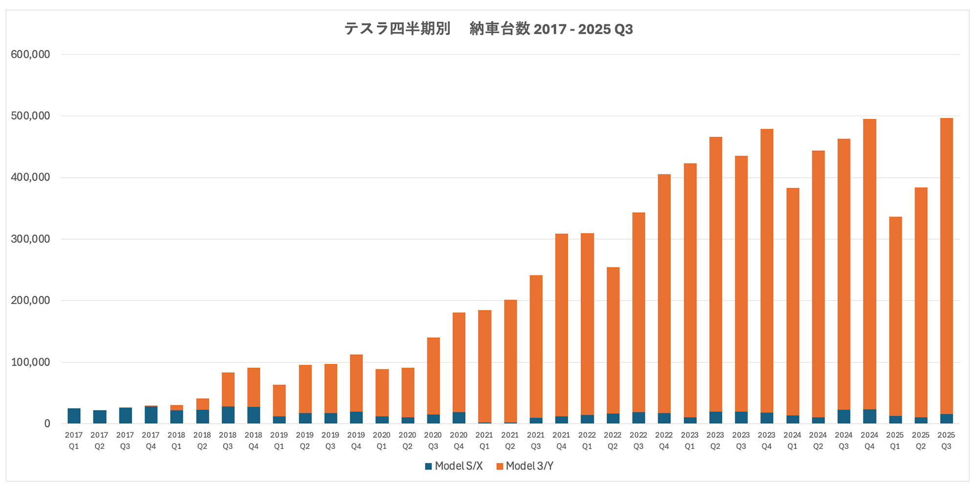 テスラの2025年第3四半期(Q3)生産台数と納車台数が発表された。納車台数は49万7,099台で過去最高を記録。エネルギー貯蔵製品も過去最大の12.5 GWhと大きく伸びた。注目ポイントを速報で解説する。