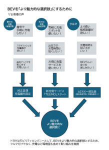 具体的には、ユーザーの声を元にした課題として「家での充電(普通充電)」、「外での充電(急速充電)」、「クルマ」という視点を挙げた上で、「BEVをより魅力的な選択肢に」するためになされた改善点が示されています。