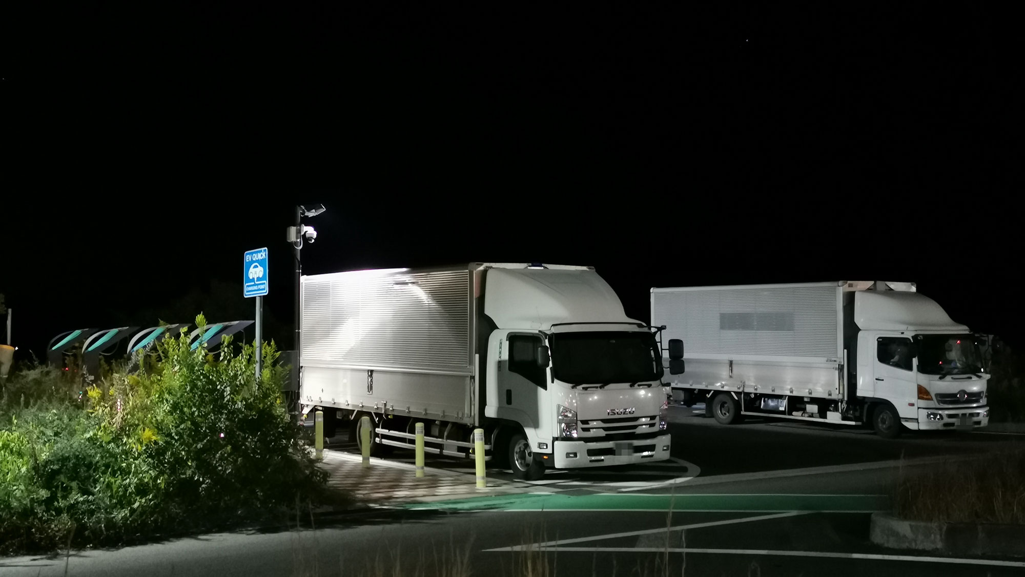 浜松SAでは駐車スペースに停められないトラックがEV充電スペースにも駐車。充電枠を1つ使用不能にしていました。たまたま充電するクルマは私が乗っていたシールだけだったし、こんなことで怒る気はありません。むしろ実行不可能な法律を作ったことに怒りを感じます。そして日本は本気で物流改革を行わないとならないと感じました。