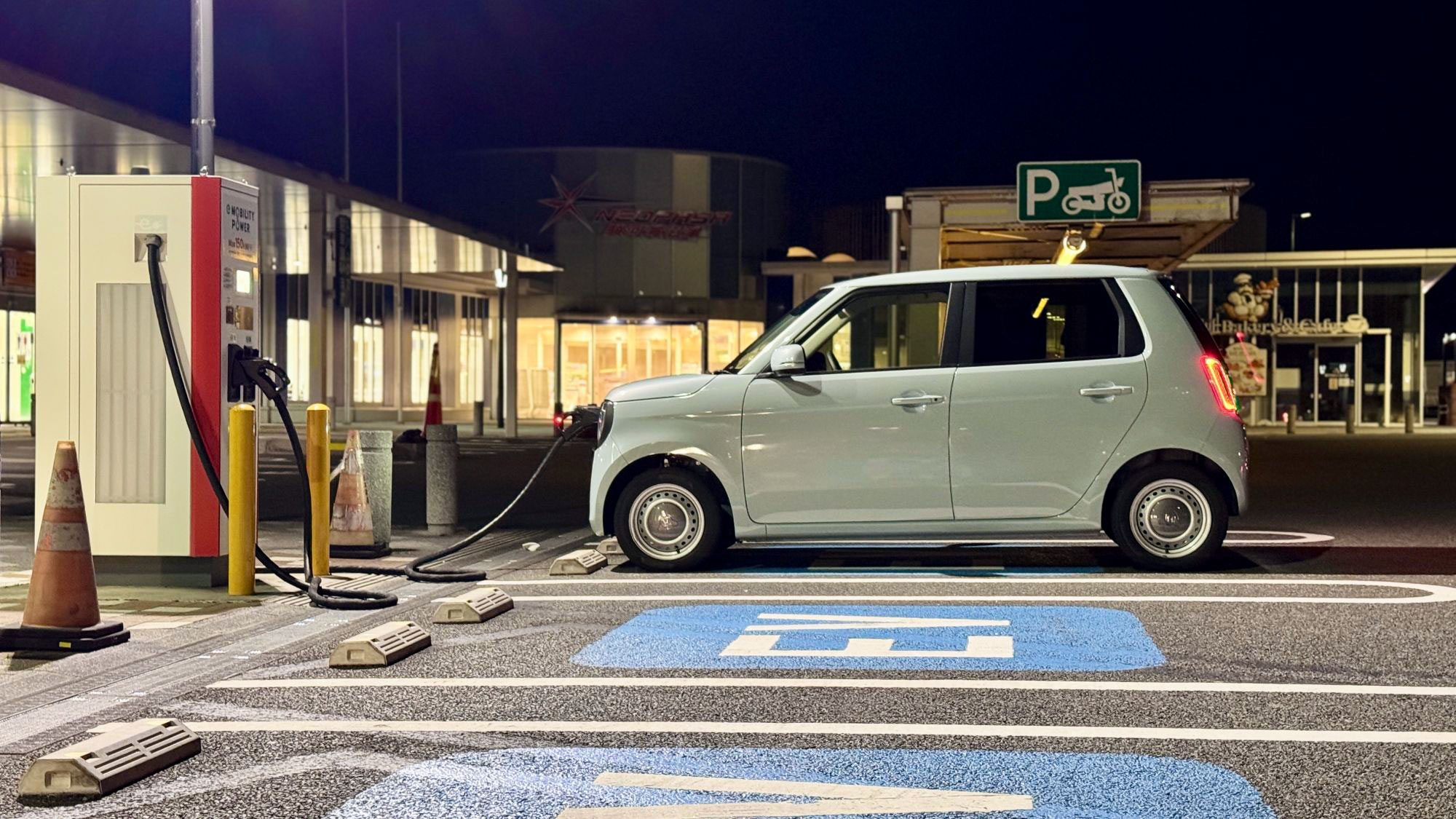 N-ONE e:に150kW器はtoo muchですので、充電中はクルマから離れず、すぐに他車に譲れるようにしていました。