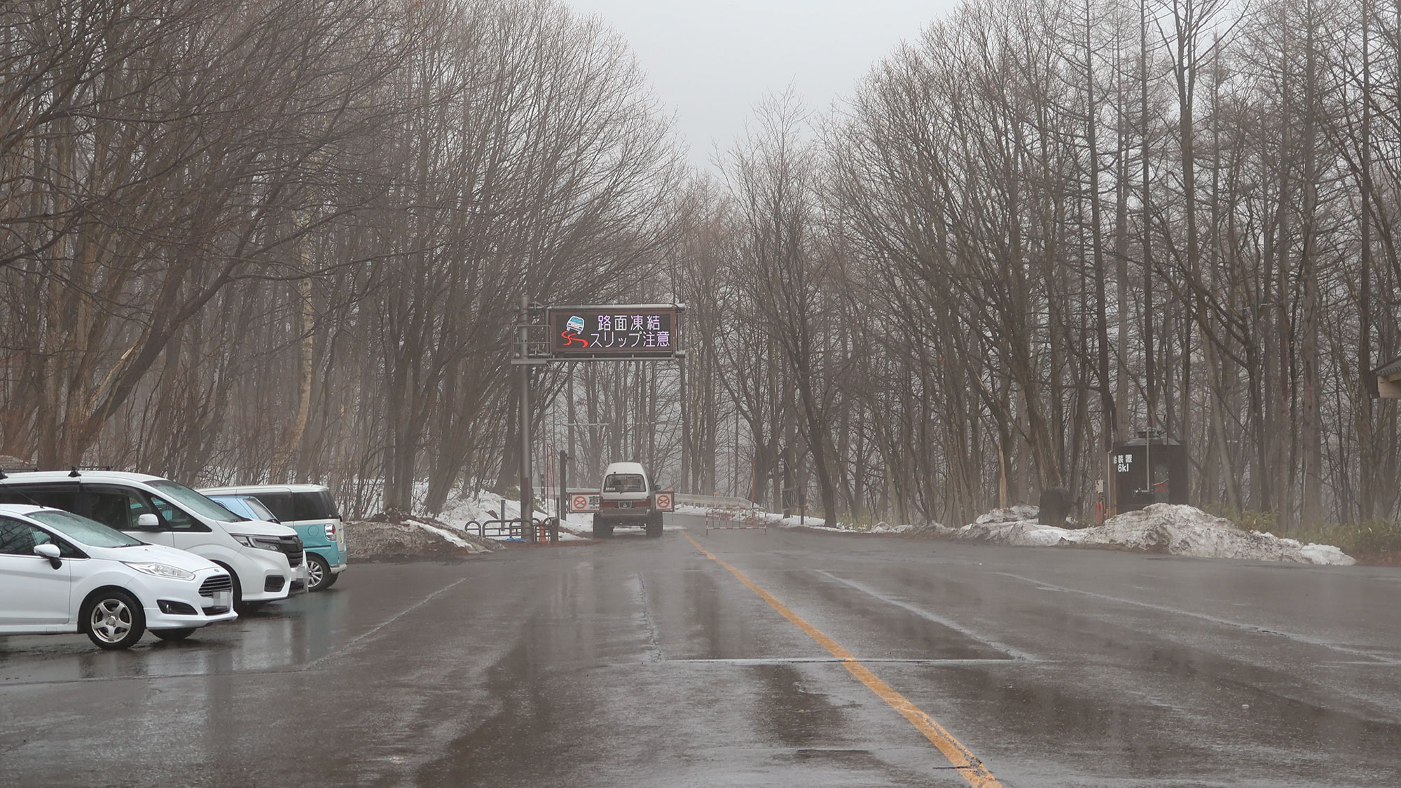 草津スキー場の脇にある通行止めの限界点まで行っても路面に雪はまったく残っていませんでした。