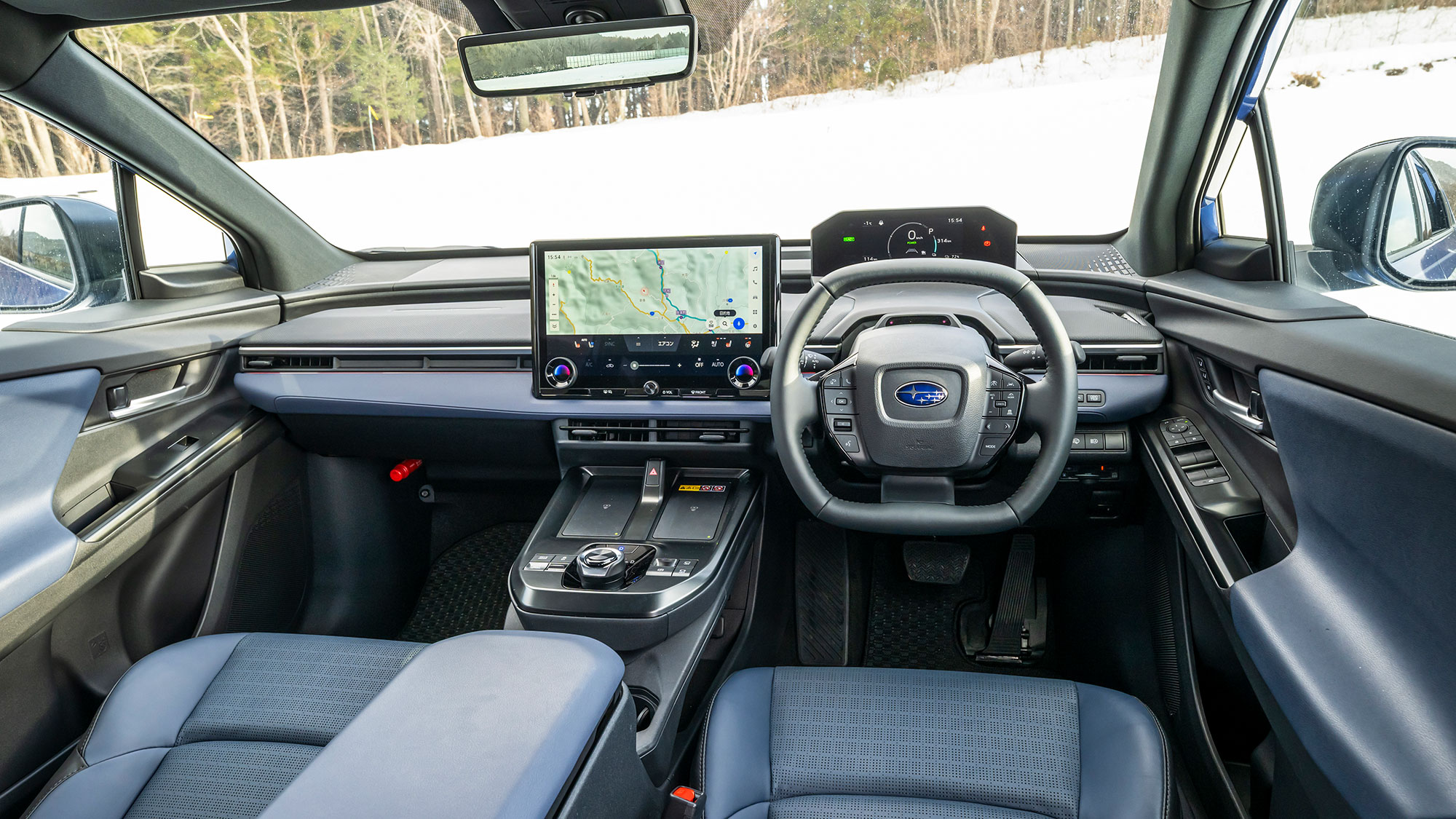 上下がややフラットになったステアリングホイールや、押して左右に回すタイプのATシフターなど、インテリアのデザインや操作系はソルテラと同じだ。視界性能にこだわるスバルだけあってAピラーによる死角が少ない。