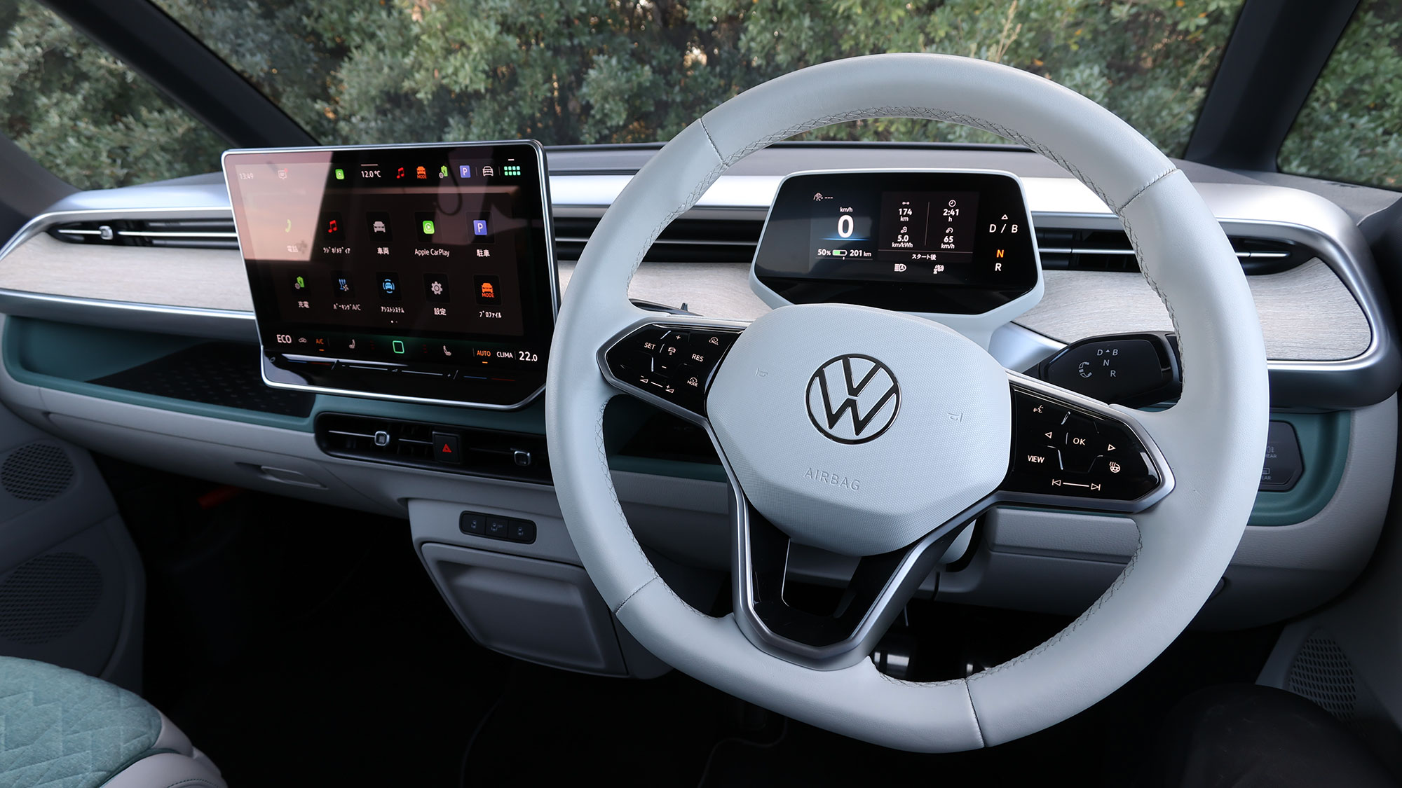 さて、日本市場では貴重なミニバンEVであるID.Buzz。標準モデル(ホイールベースが2990mm)の「Pro」と、室内長を伸ばして7人乗り「Pro Long Wheelbase」(3240mm)のバリエーションがあり、今回試乗したのは標準ホイールベースモデルの「Pro」でした。
