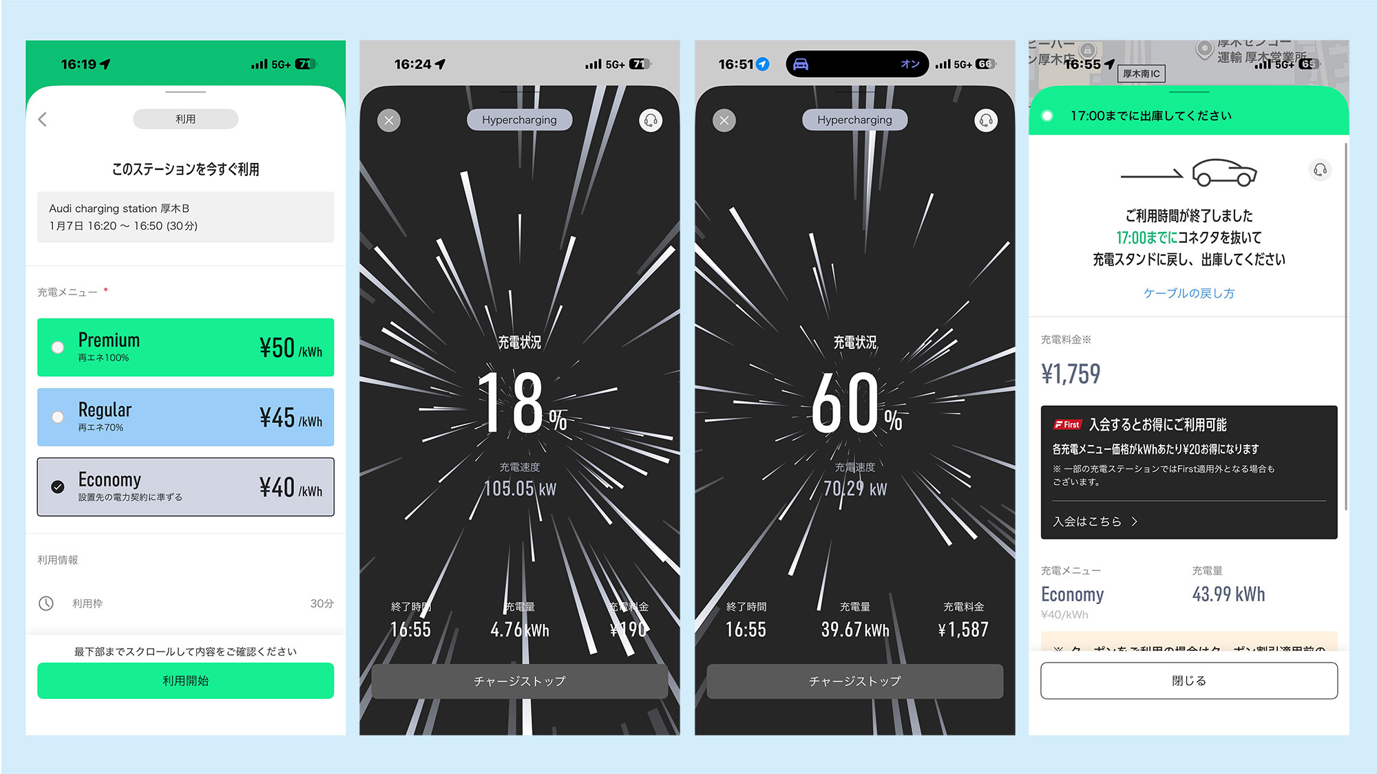 今回のドライブでは、神奈川県厚木市にある「Audi Charging Station 厚木」に立ち寄って充電してみました。新東名高速道路の厚木南インターチェンジを下りてすぐの場所にある、便利な高出力経路充電スポットです。