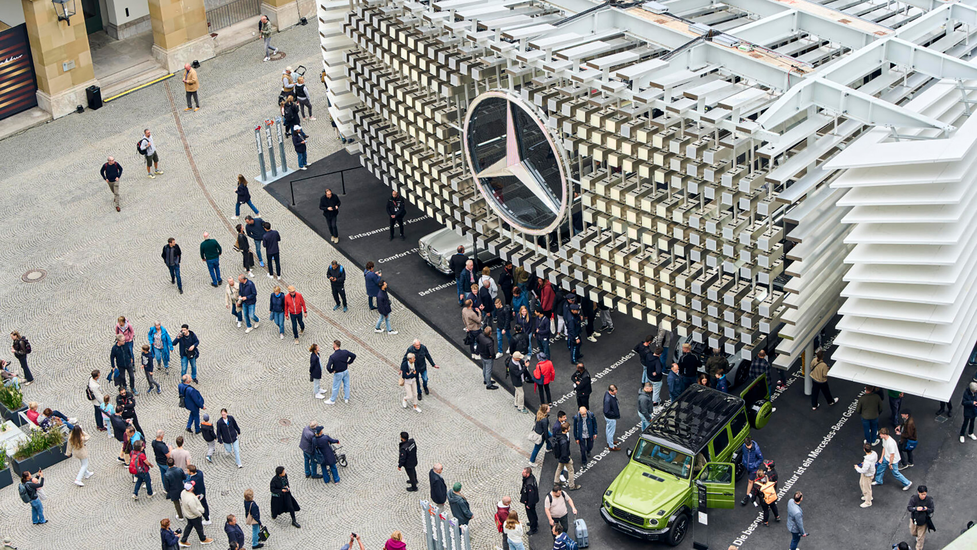 取材に出発する前は、「BMWやメルセデス・ベンツは主力車種のiX3とGLCの新型発表で力が入っているだろうが、フォルクスワーゲンはID.2 Allの市販モデルくらいか」と想像していました。実際、BMWとメルセデス・ベンツの展示は力の入ったもので、特にメルセデスが王宮の中庭に「Welcome home」と銘打って構えたブースは、そのスケールと絢爛さで目を見張りました。